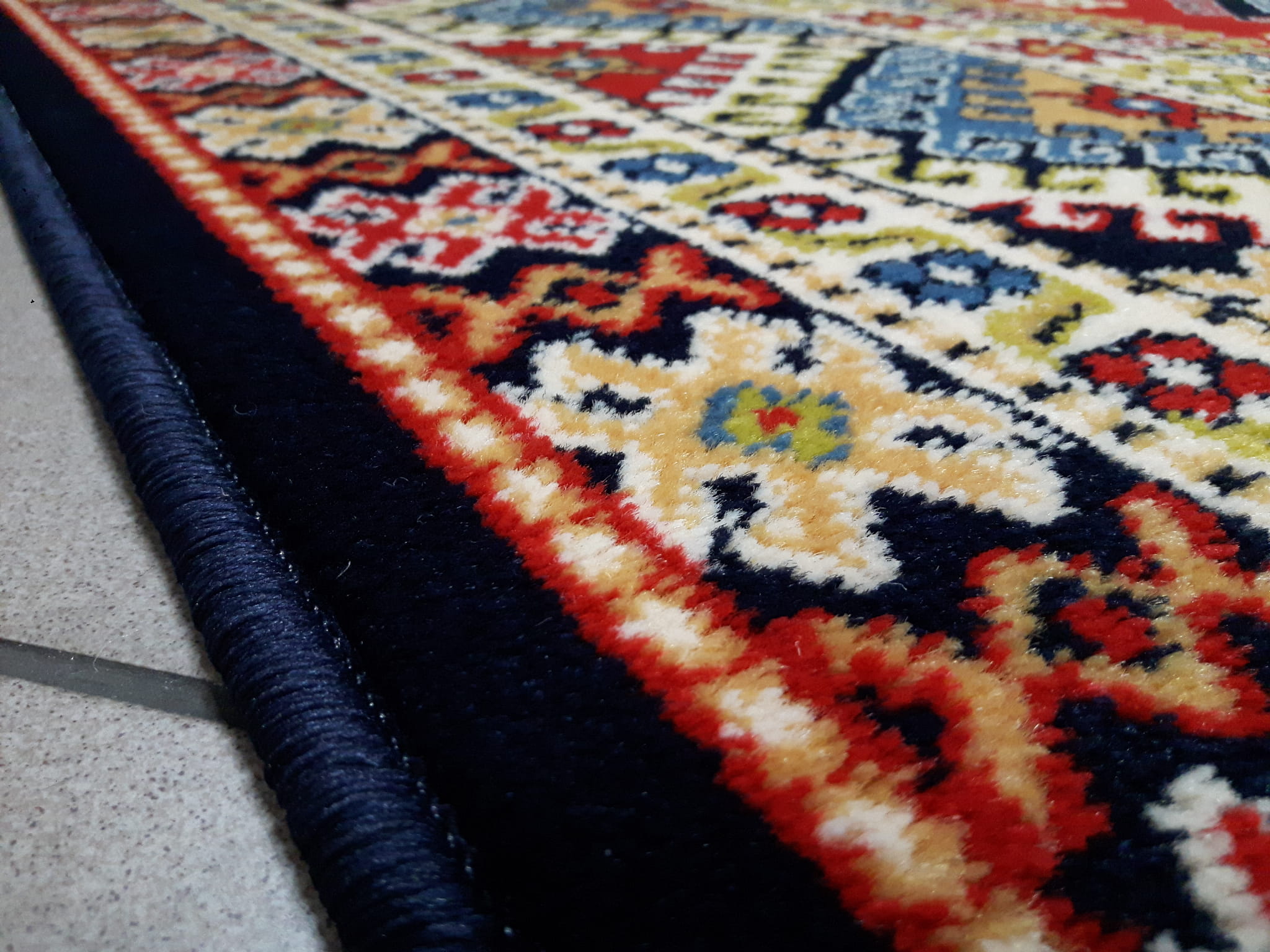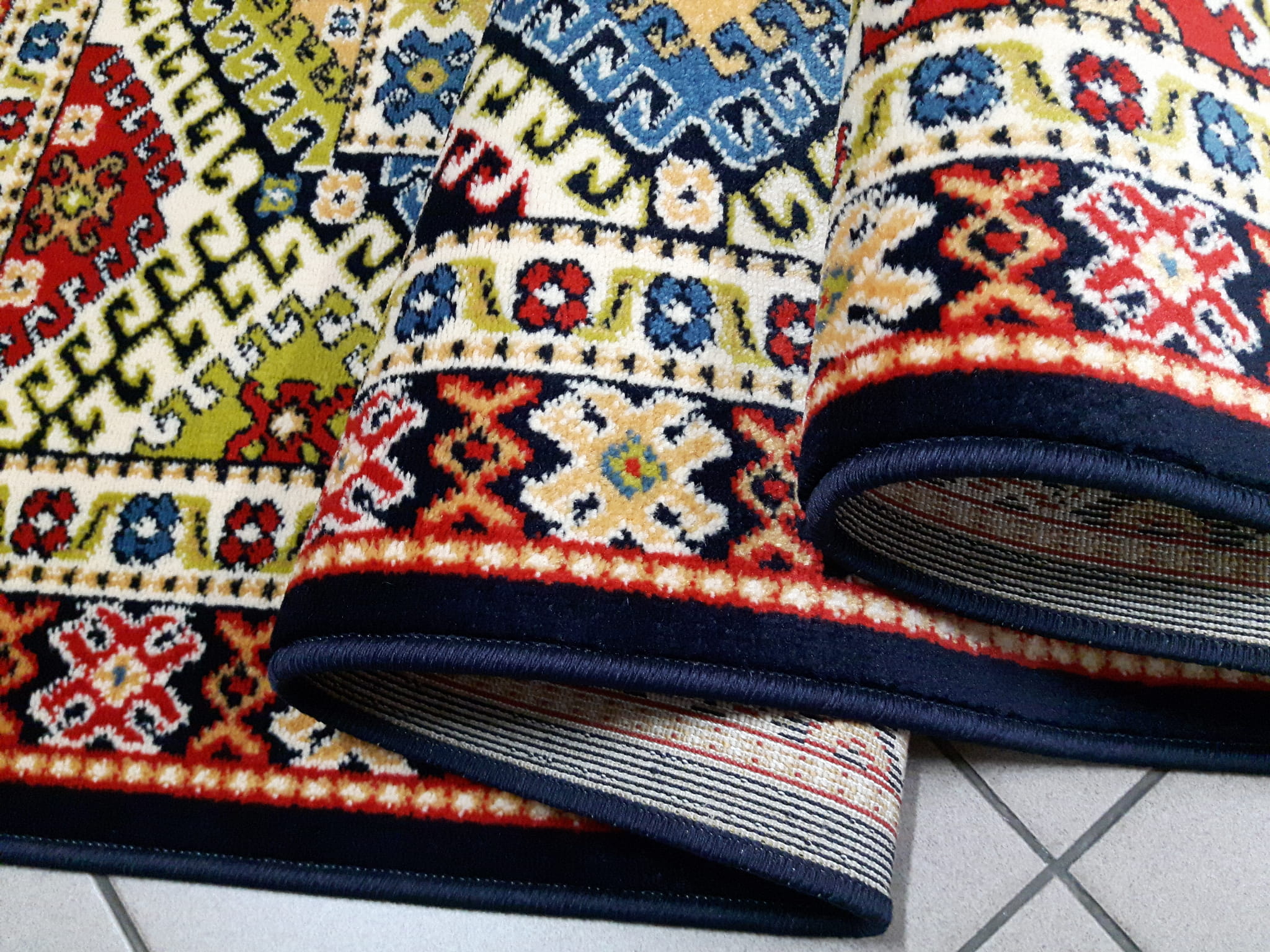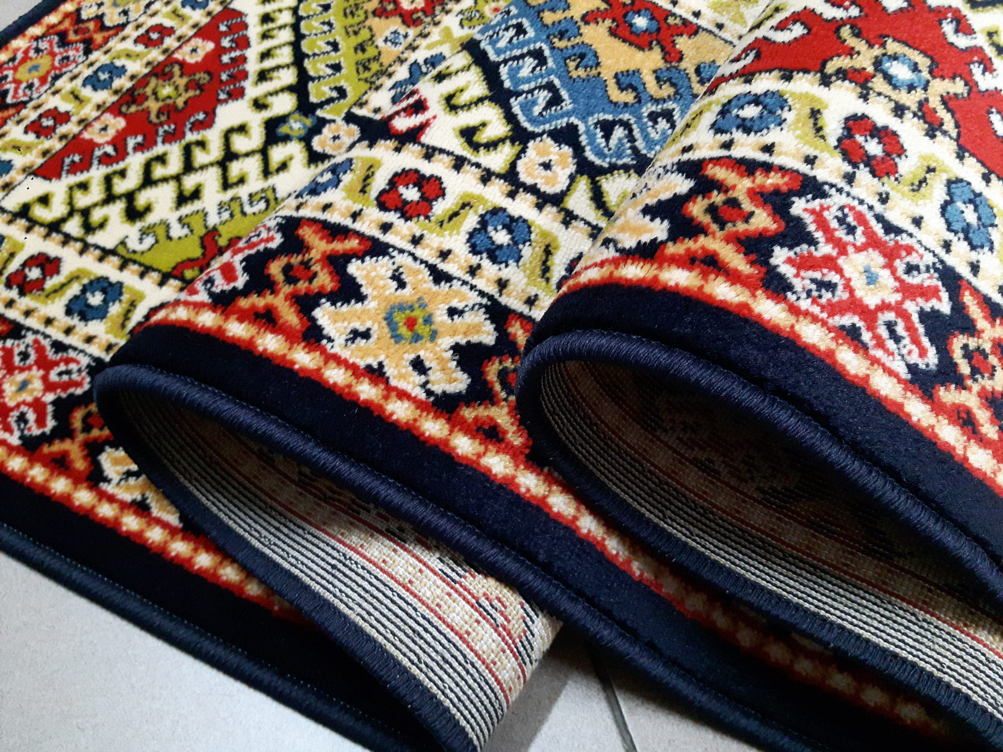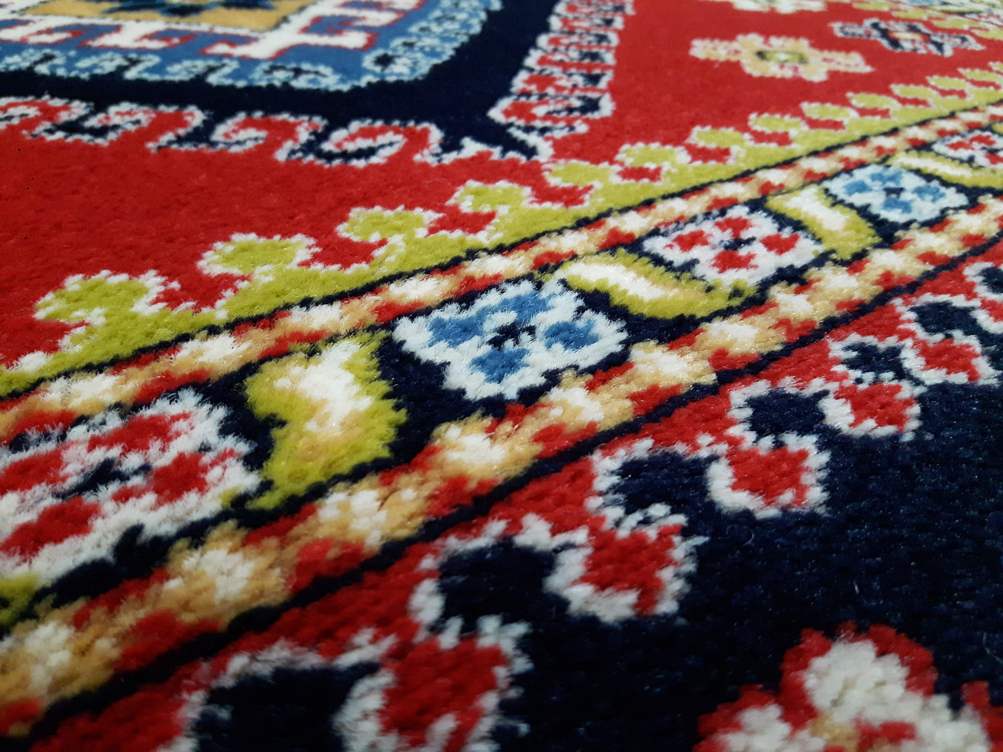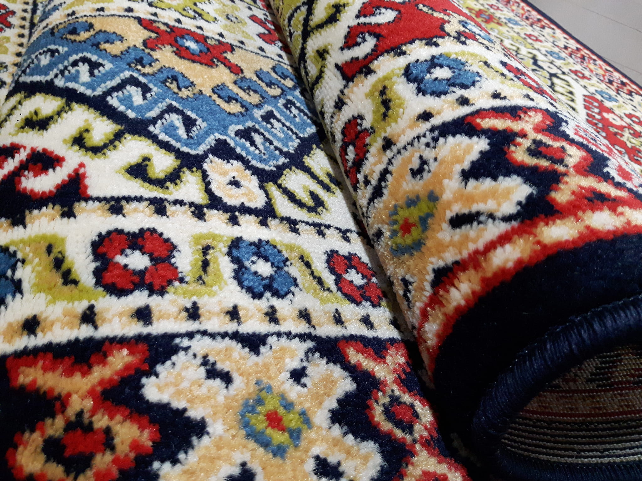 - W dotyku do złudzenia przypomina dywan wełniany. Ściślejsza struktura przędzy nadała wzorom ziarnisty (perełkowaty) wygląd co również upodabnia je do wzorów uzyskiwanych na wysokiej jakości dywanach wełnianych.