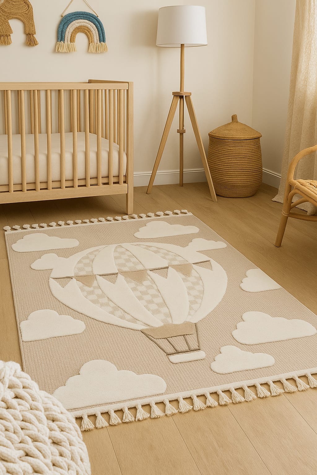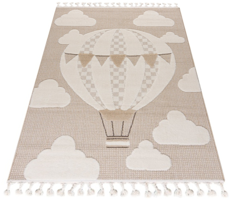 Dywan Buffo Volare 3D sensoryczny balon beż beżowy w stylu boho z fedzlami