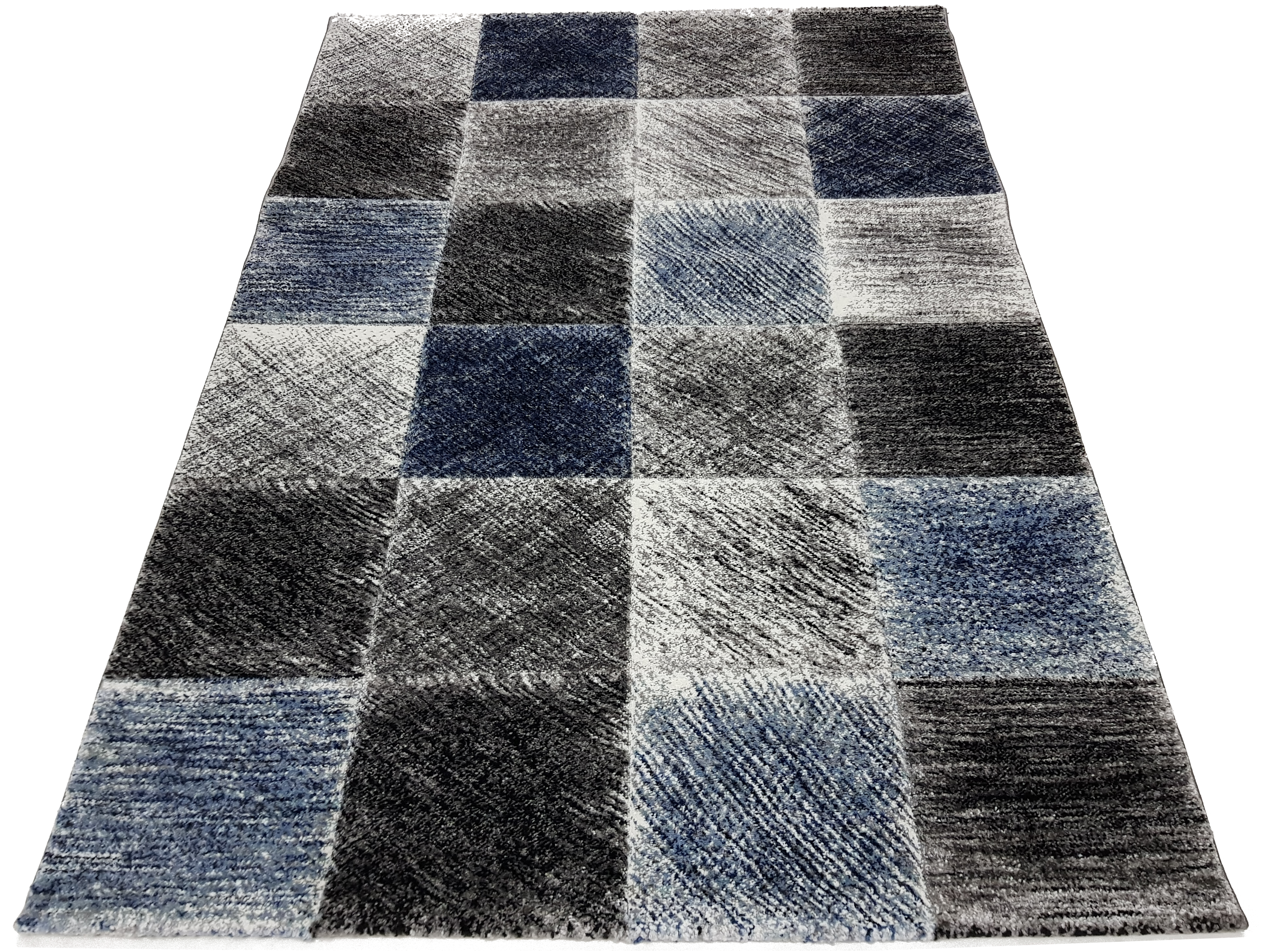 Dywan DIAMOND 3D DAISY szaro granatowy kwadraty