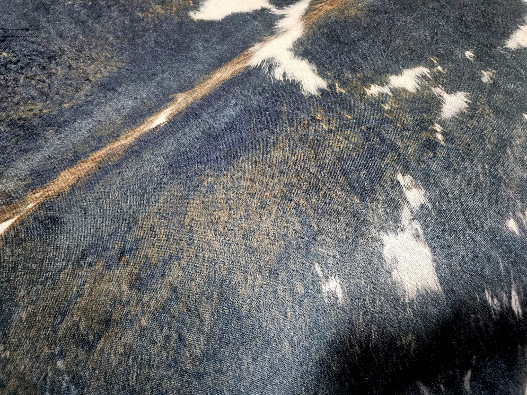 Szukasz oryginalnego i stylowego elementu dekoracyjnego? Ten dywan ze sztucznej skóry krowy to doskonały wybór. Wykonany z materiału przypominającego do złudzenia płótno z drukowanym wzorem, imituje naturalną skórę, dodając wnętrzu przytulności i charakteru. Idealny do salonu, sypialni czy biura. Łatwy w utrzymaniu czystości.