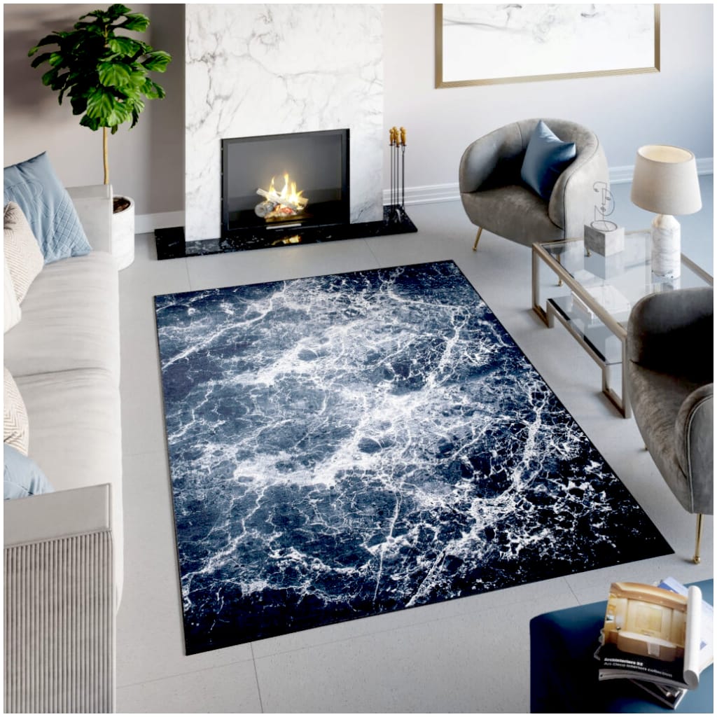 Dywan DIGITAL antypoślizg marmur czarny czarno srebrny ze srebrnym
