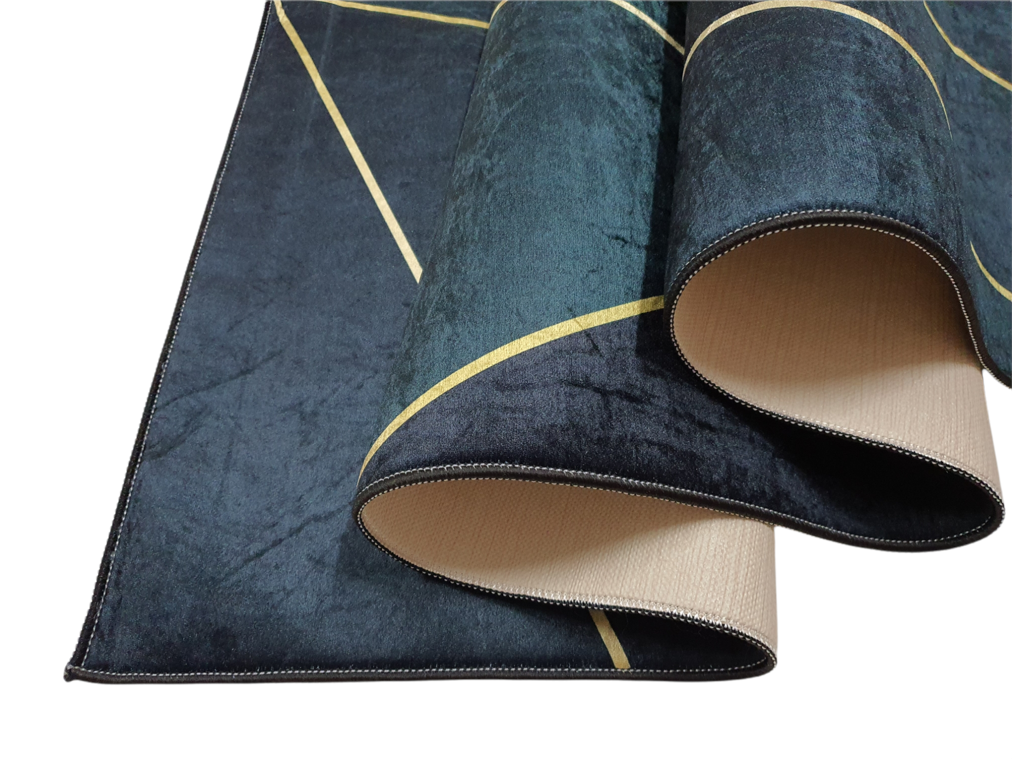 Dywan DIGITAL antypoślizgowy kreski zielony złoty butelkowa zieleń ze złotym
