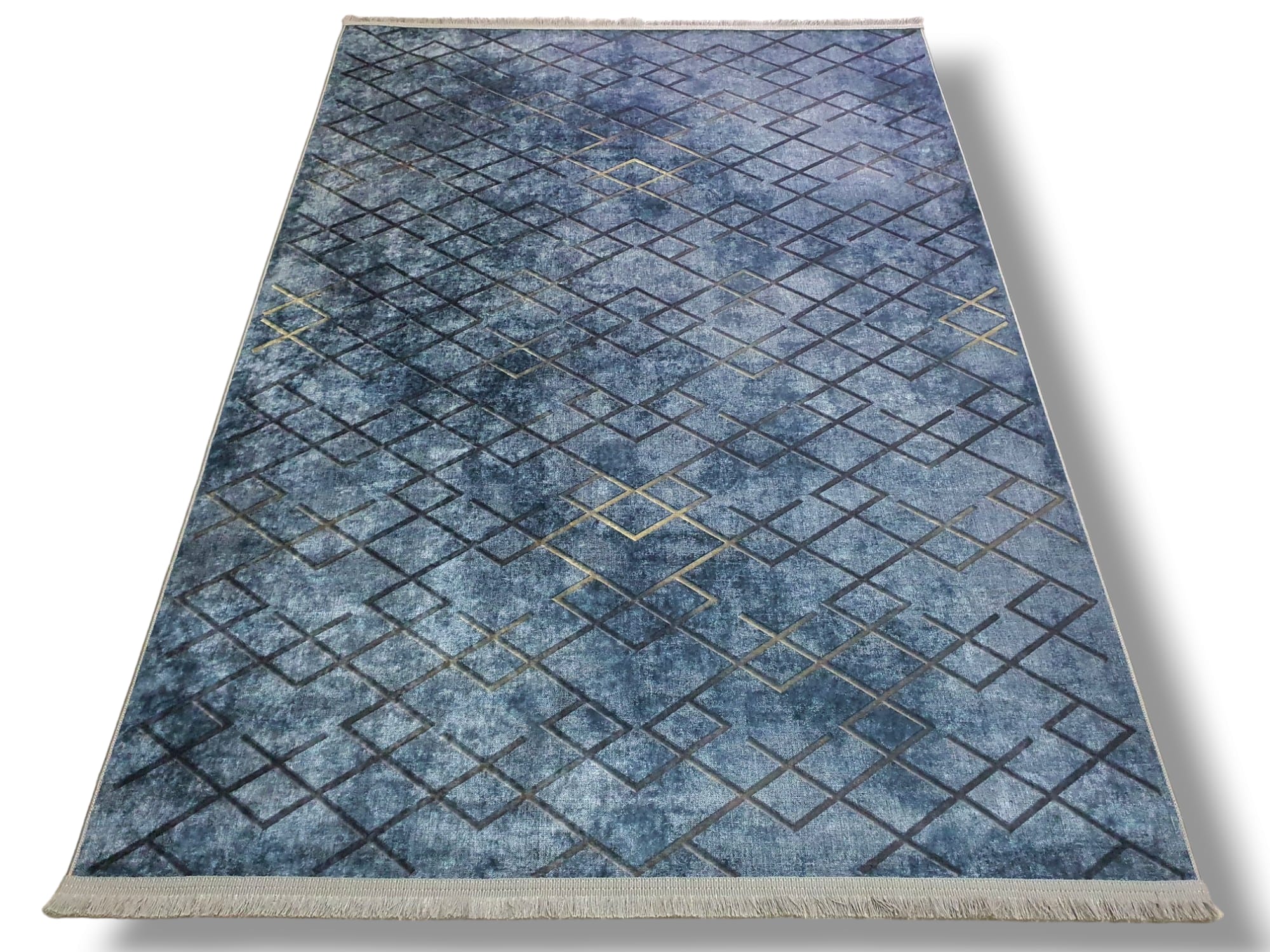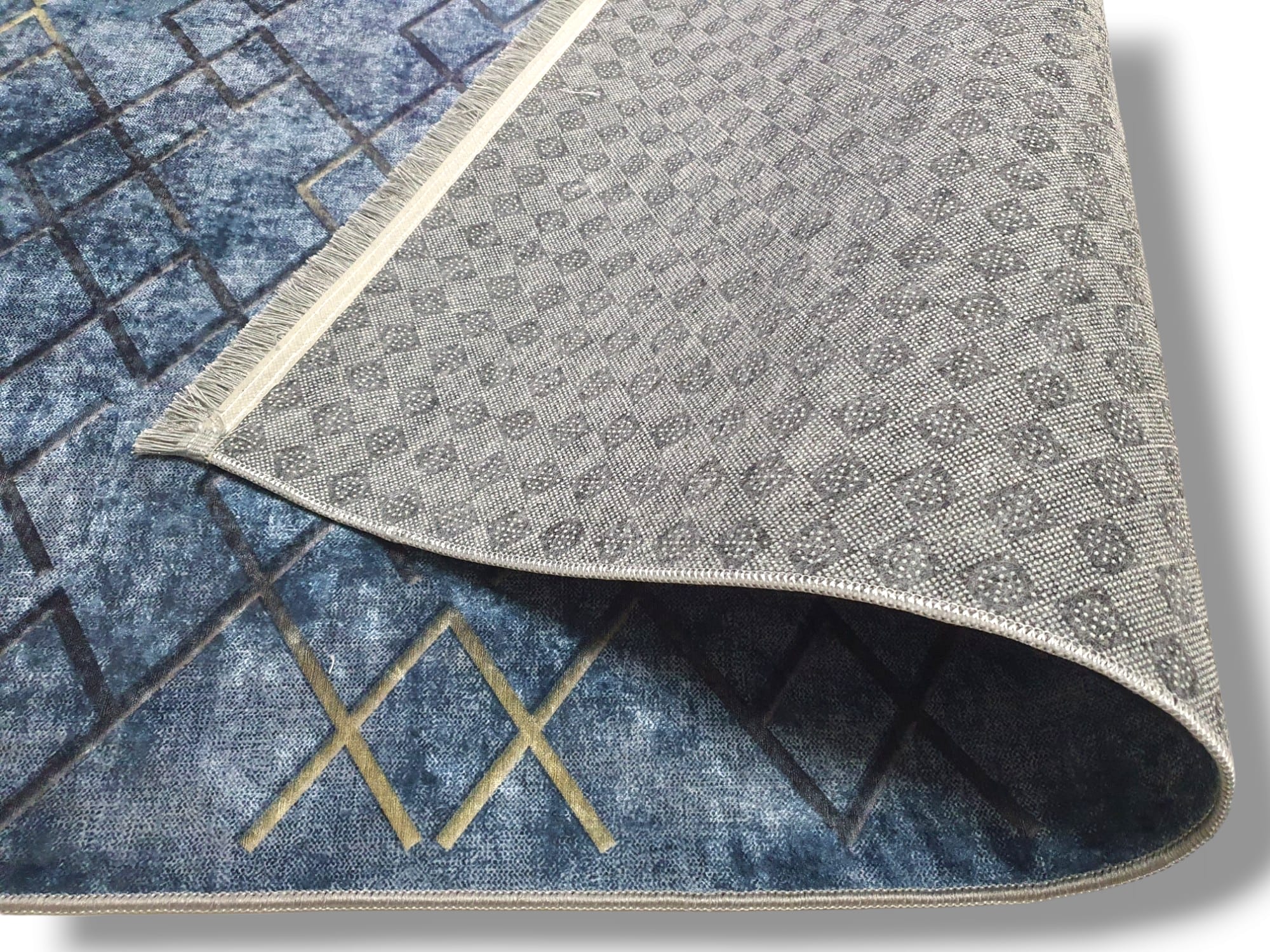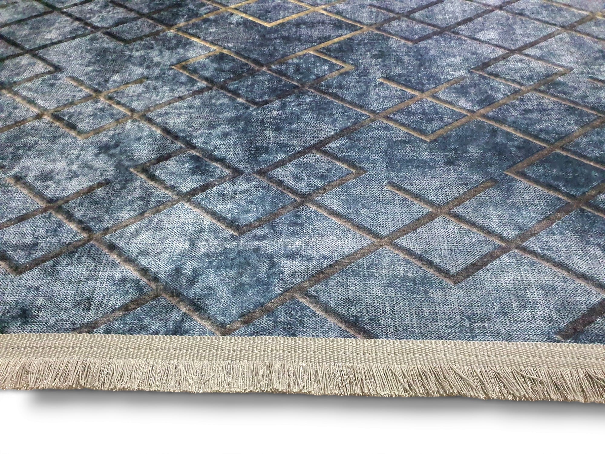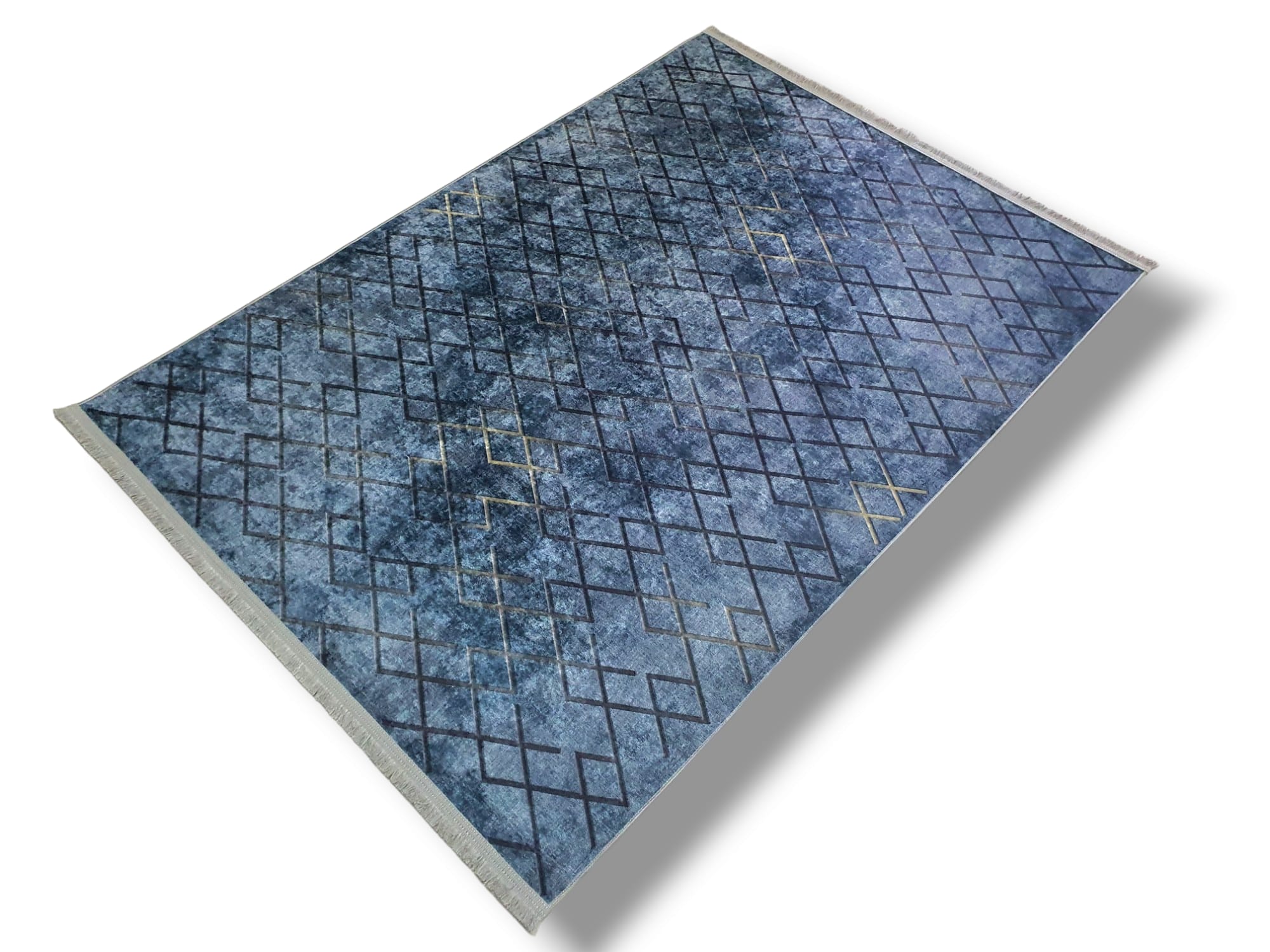 Dywan DIGITAL antypoślizgowy romby granat z frędzlami jeansowy