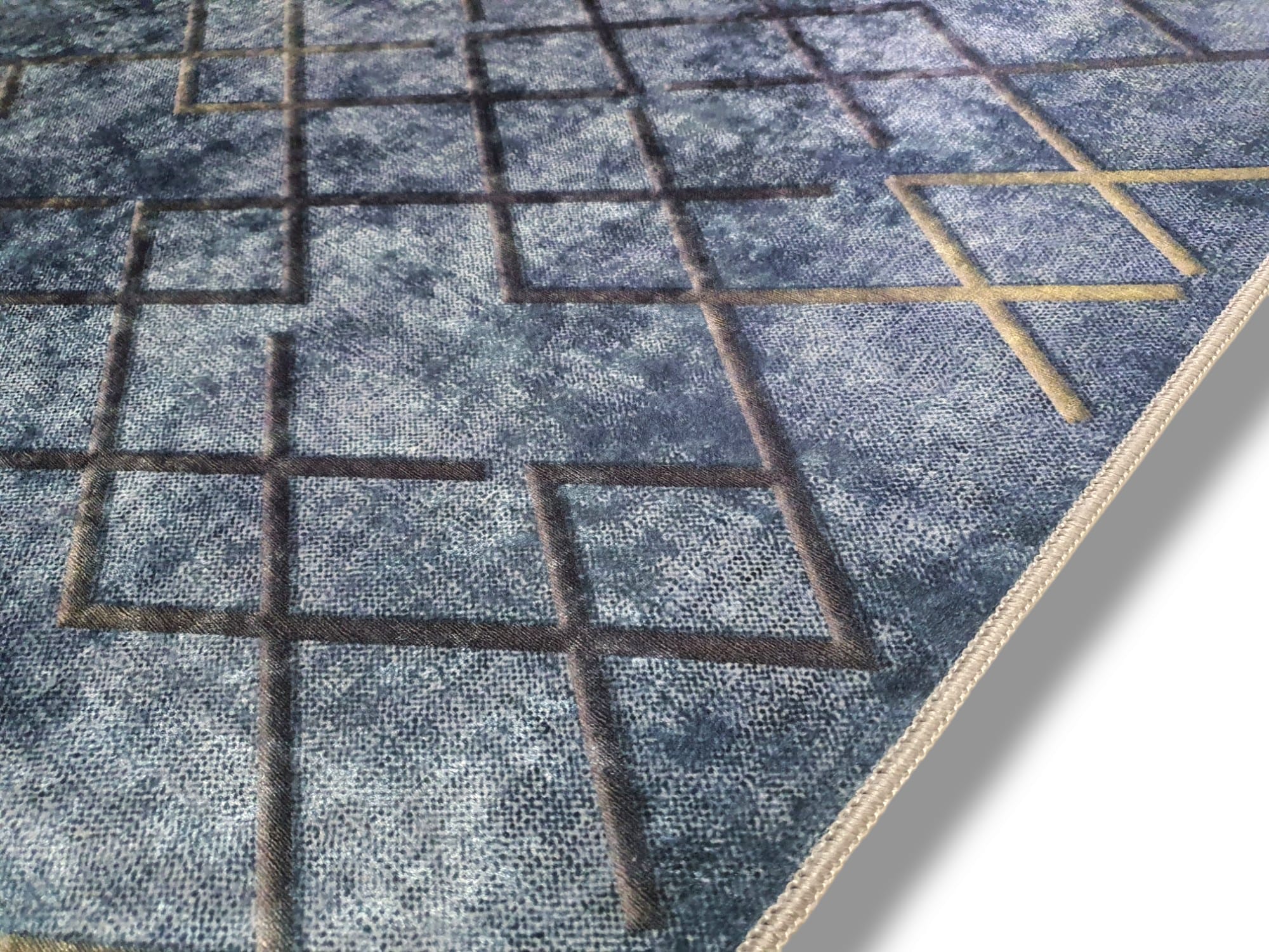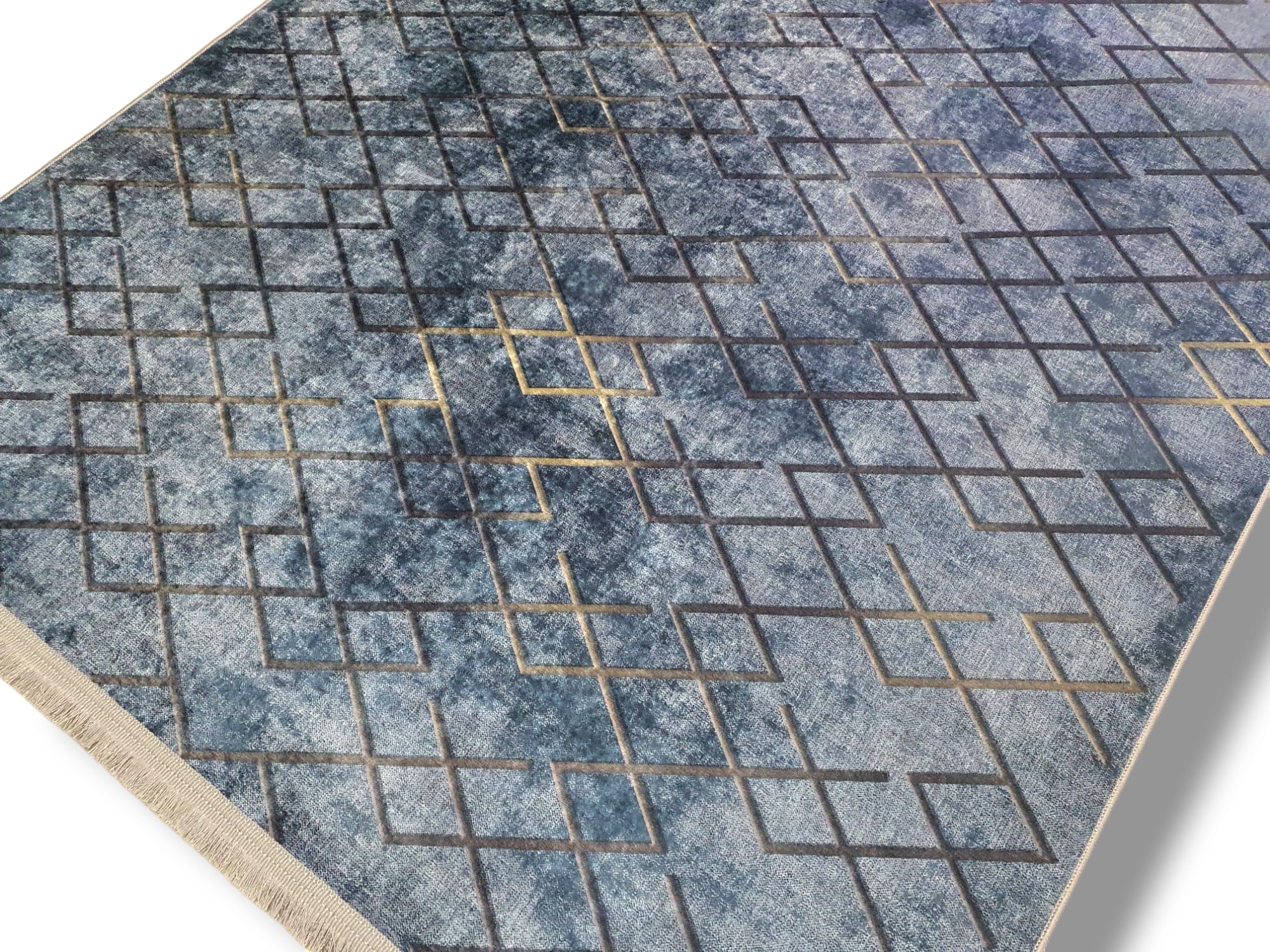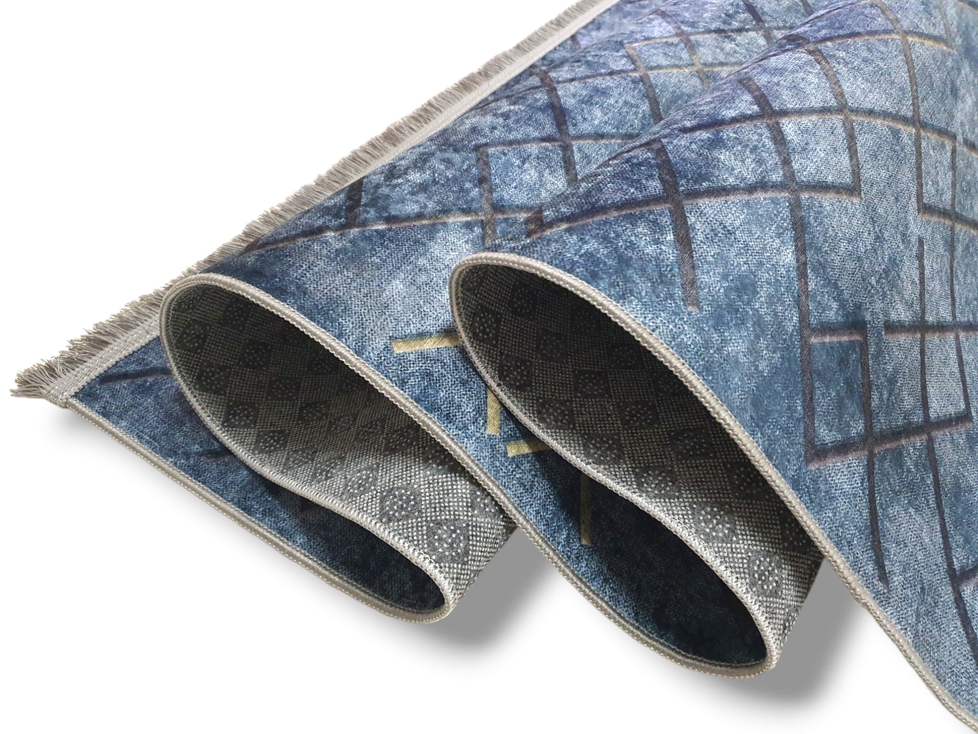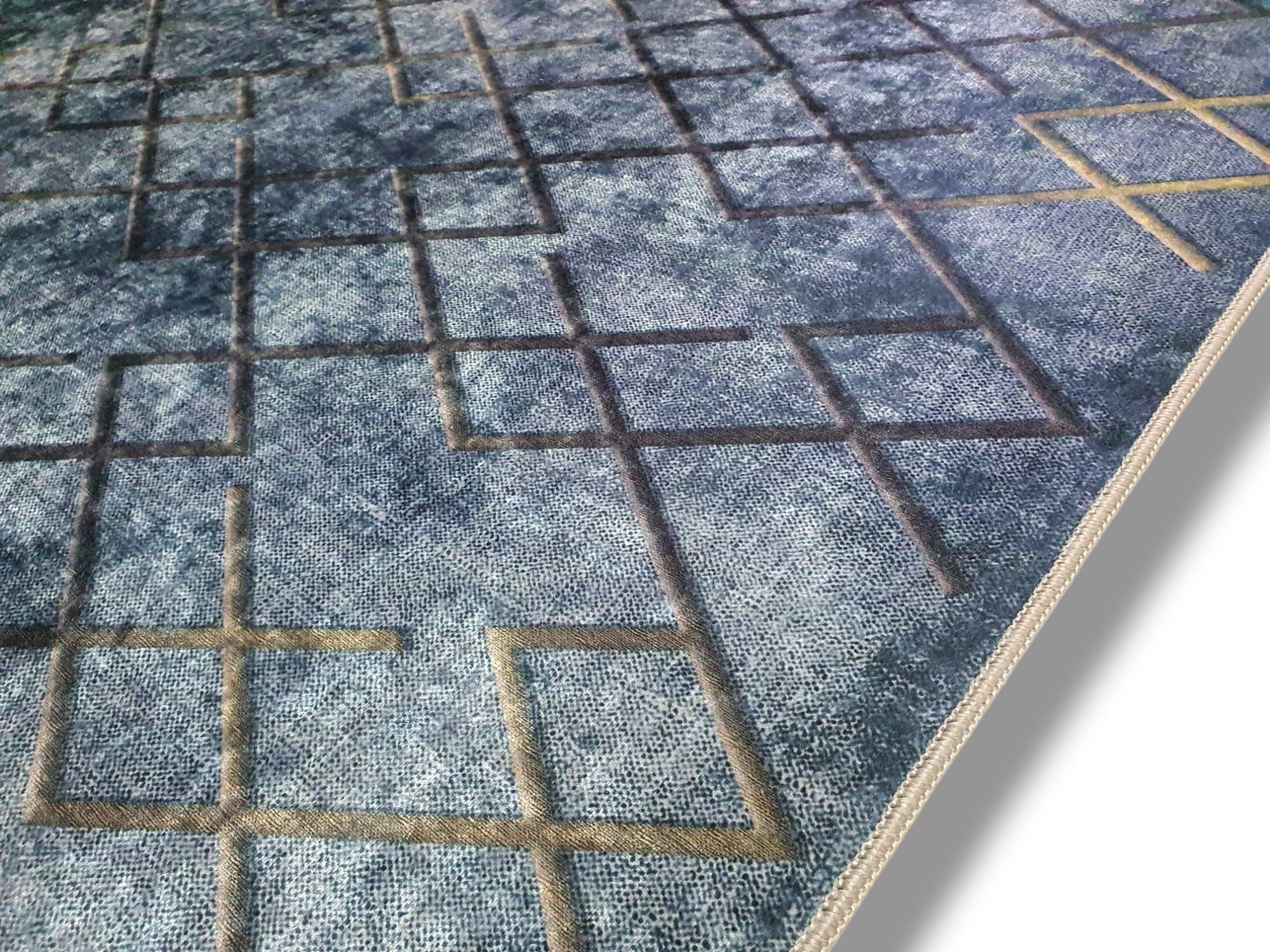 Dywan DIGITAL antypoślizgowy romby granat z frędzlami jeansowy