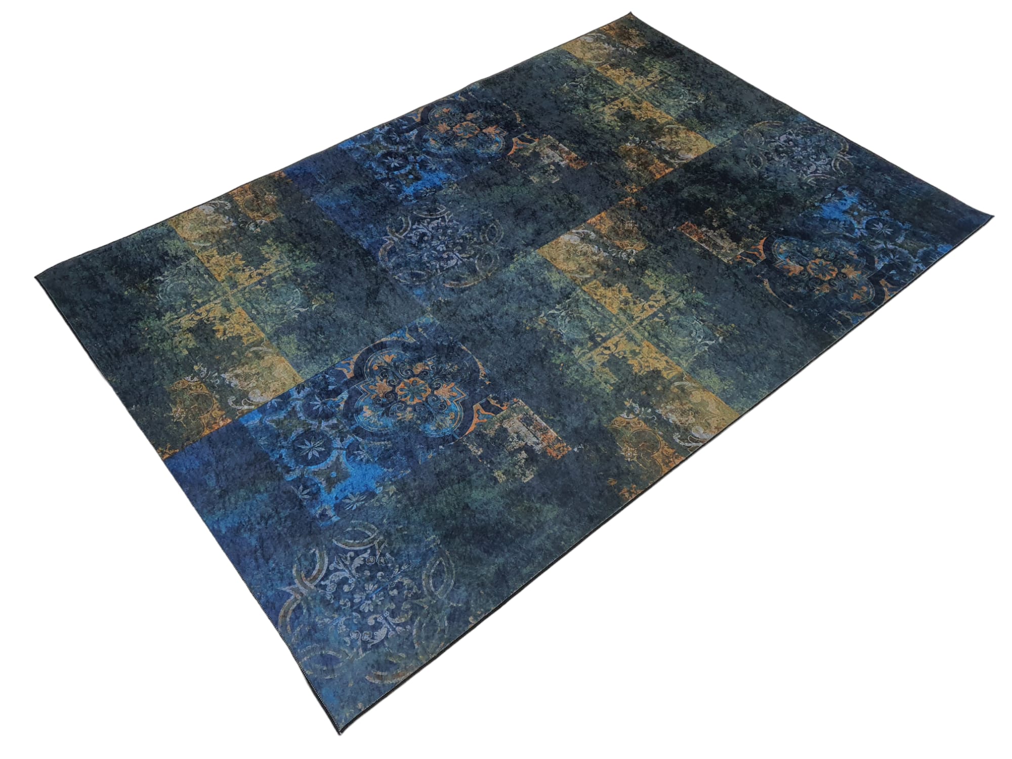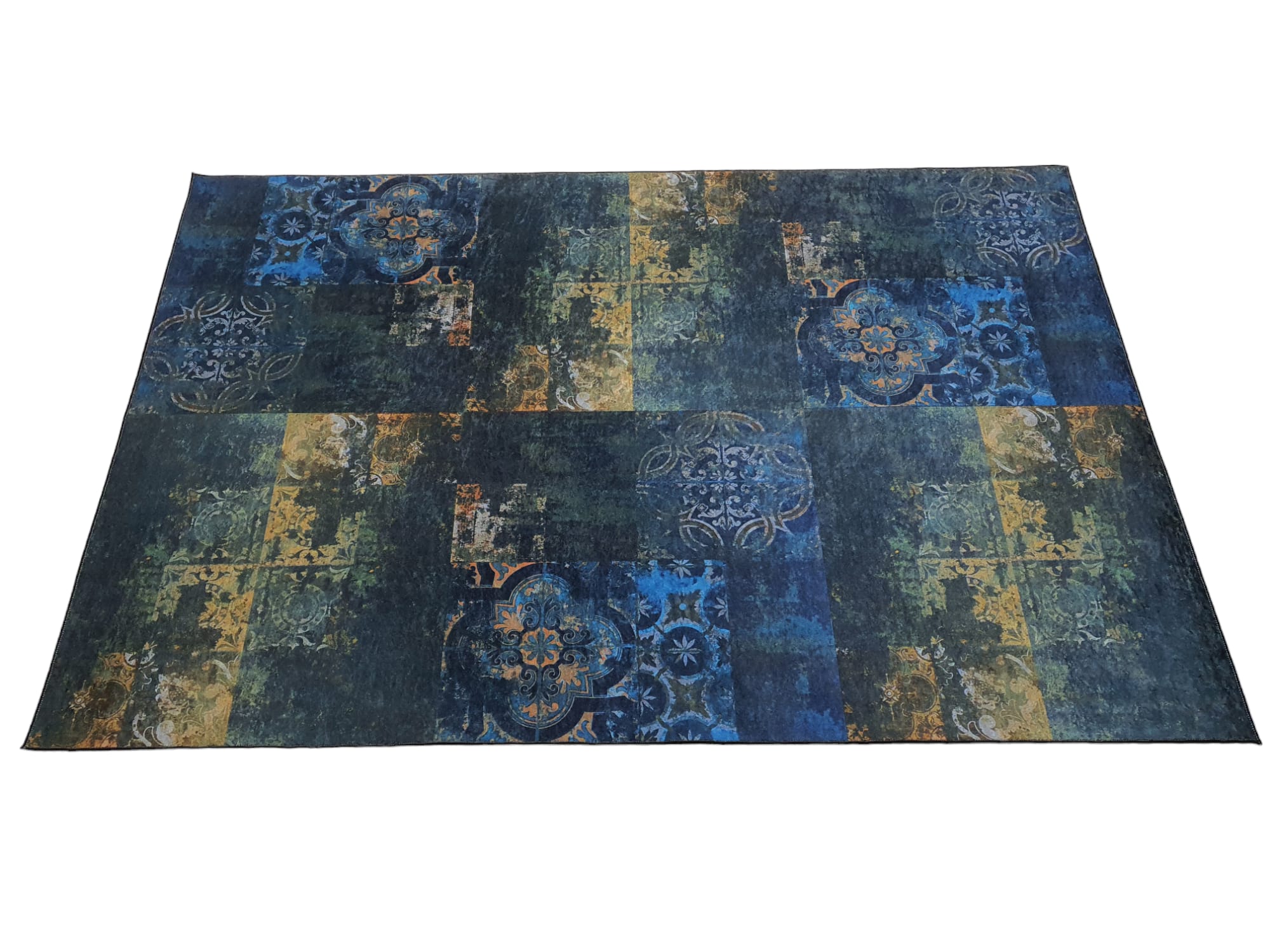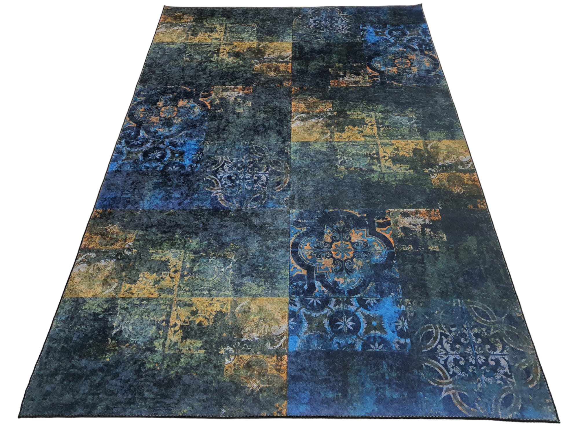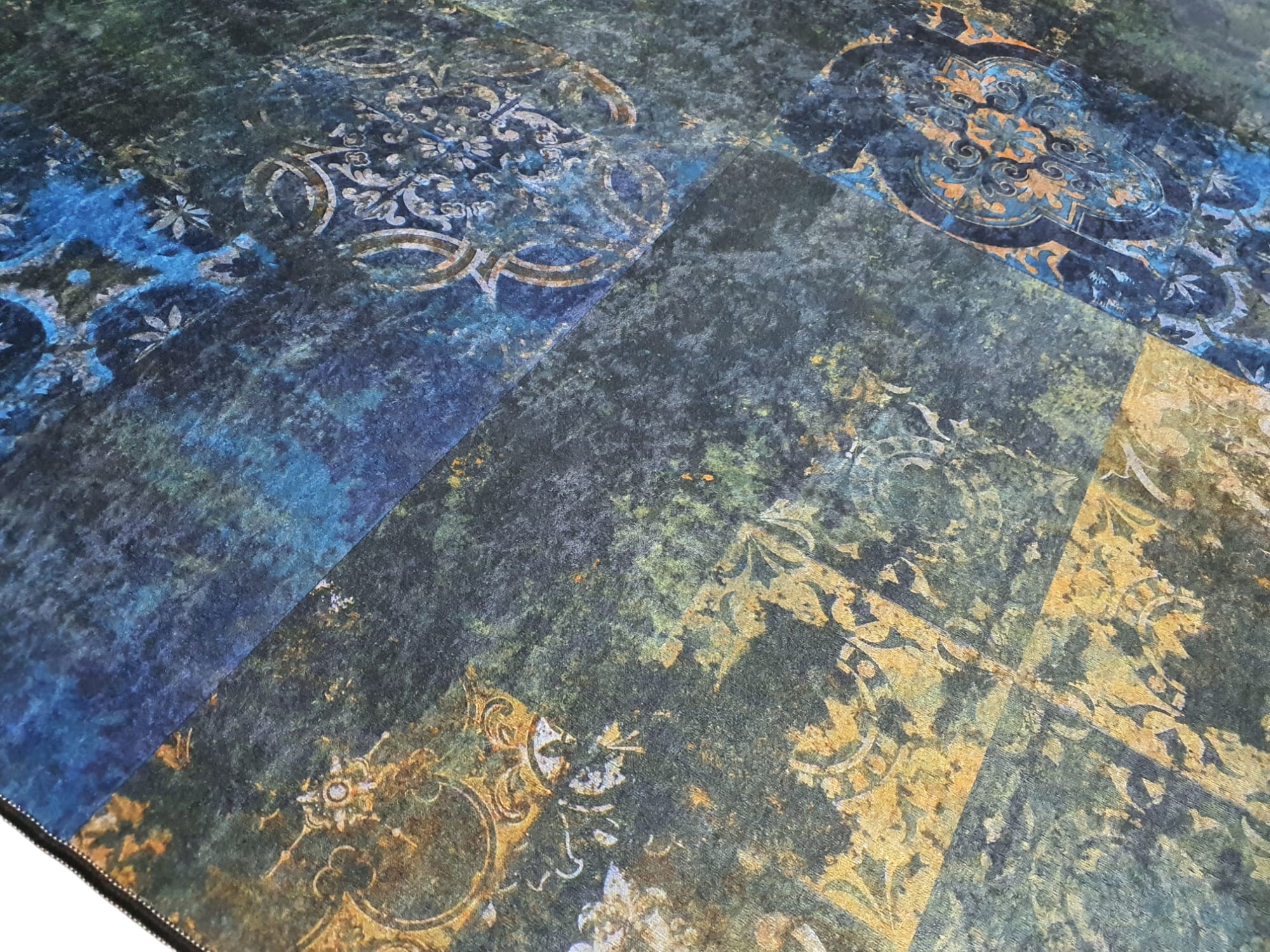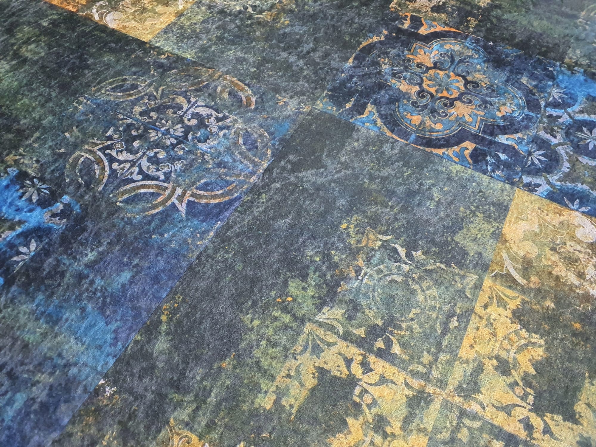 Dywan DIGITAL porto vintage styl loftowy granatowy kafelki złoty