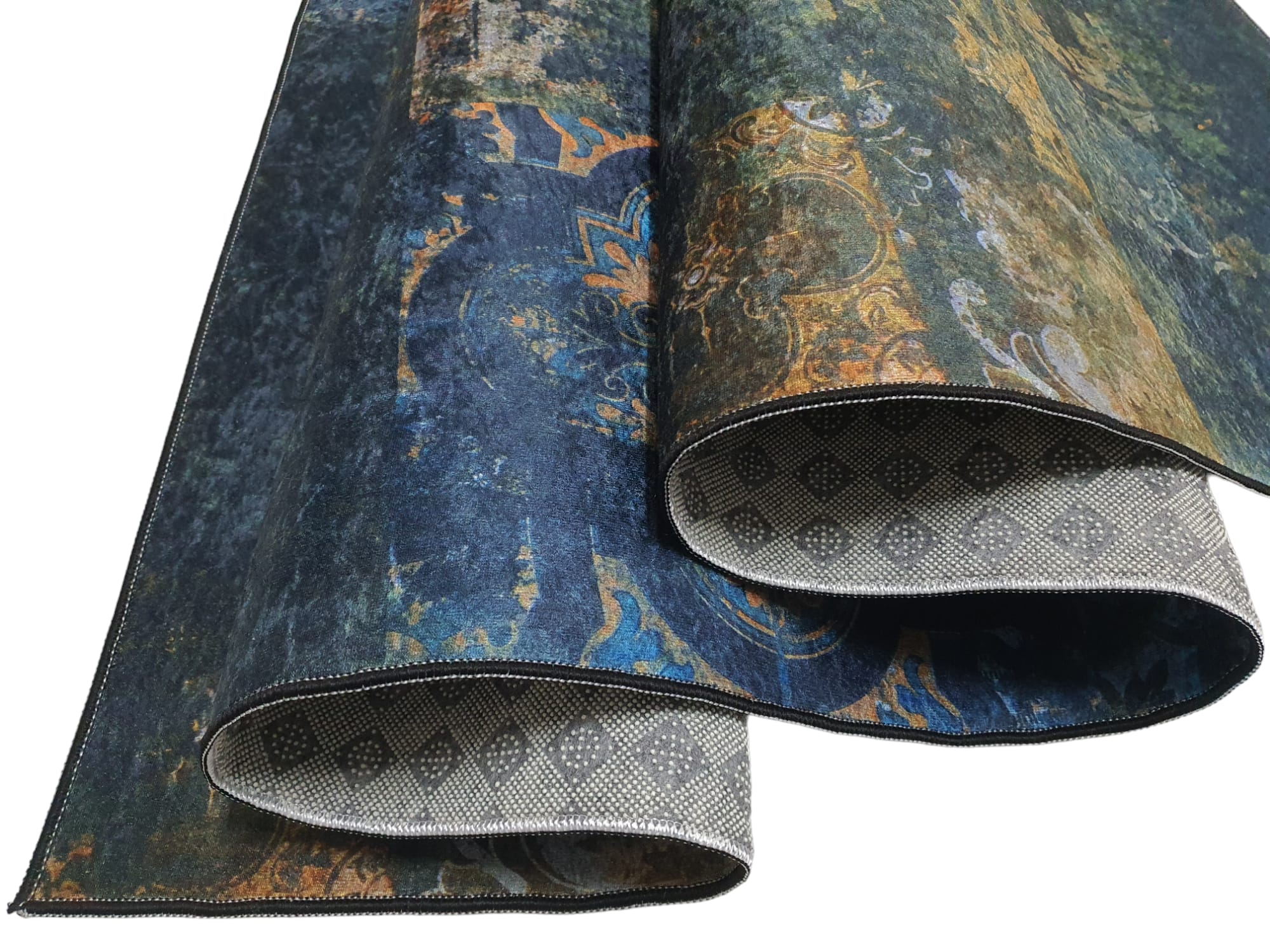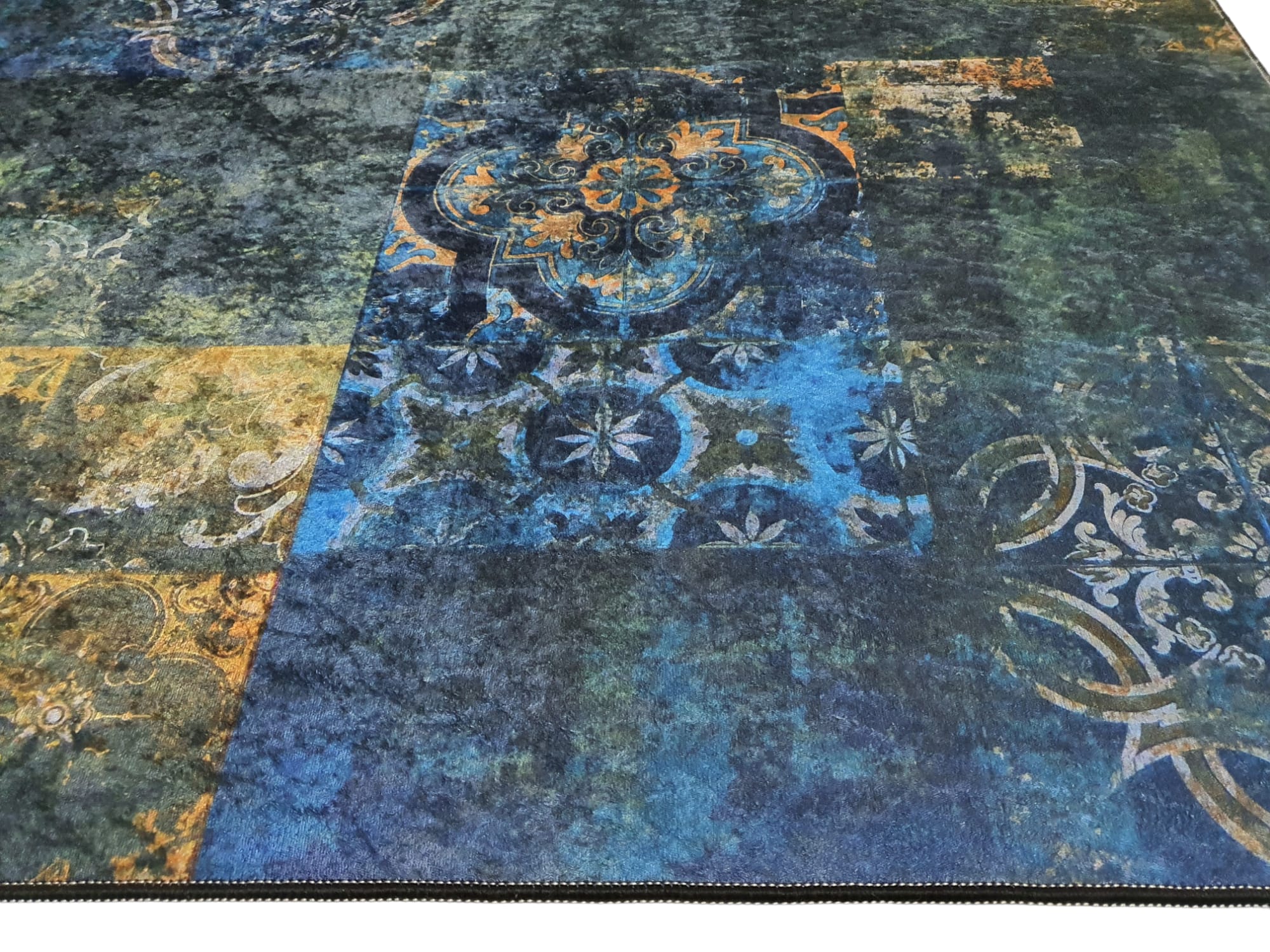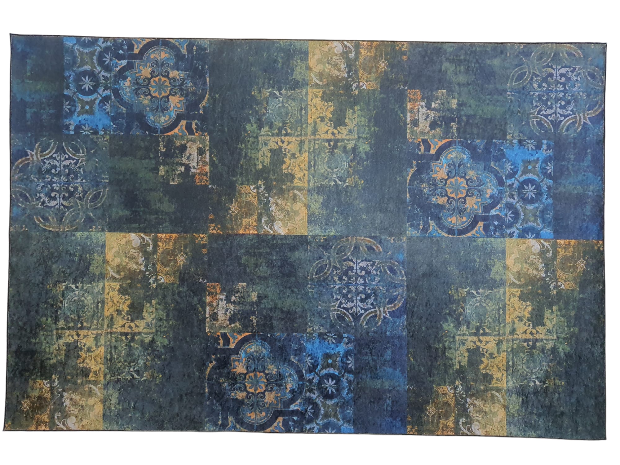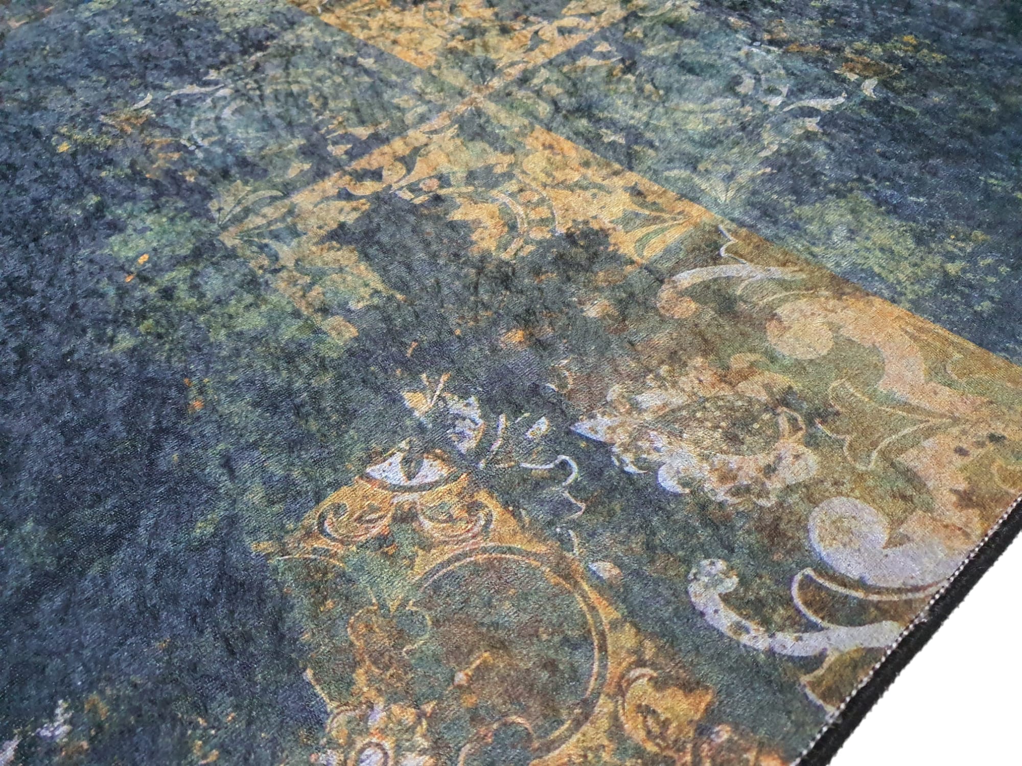 Dywan DIGITAL porto vintage styl loftowy granatowy kafelki złoty