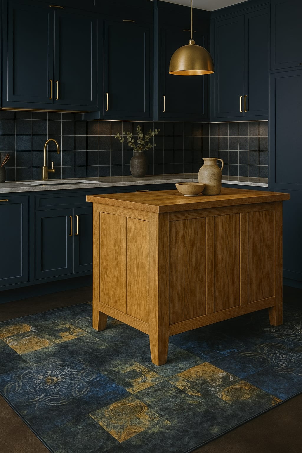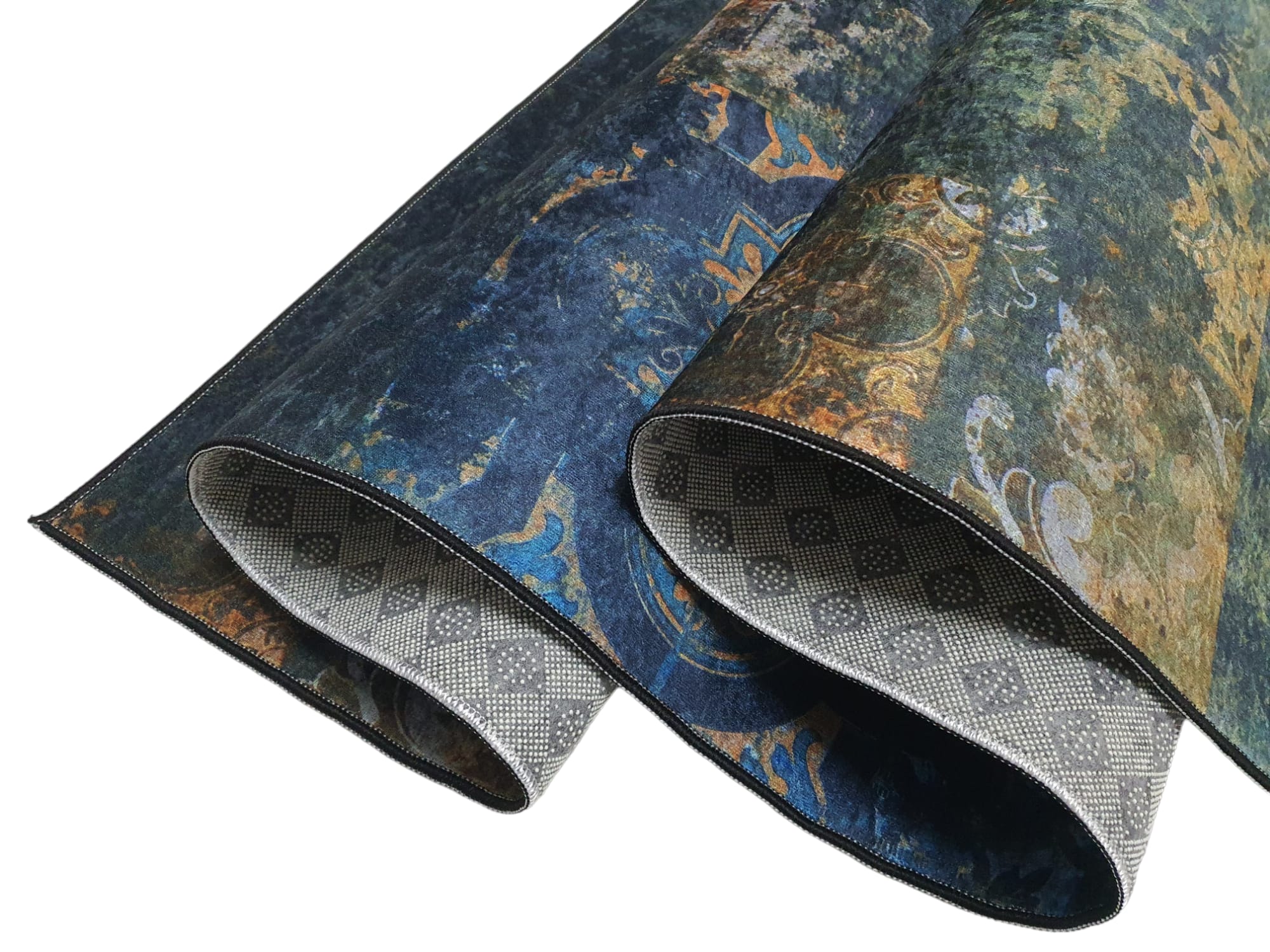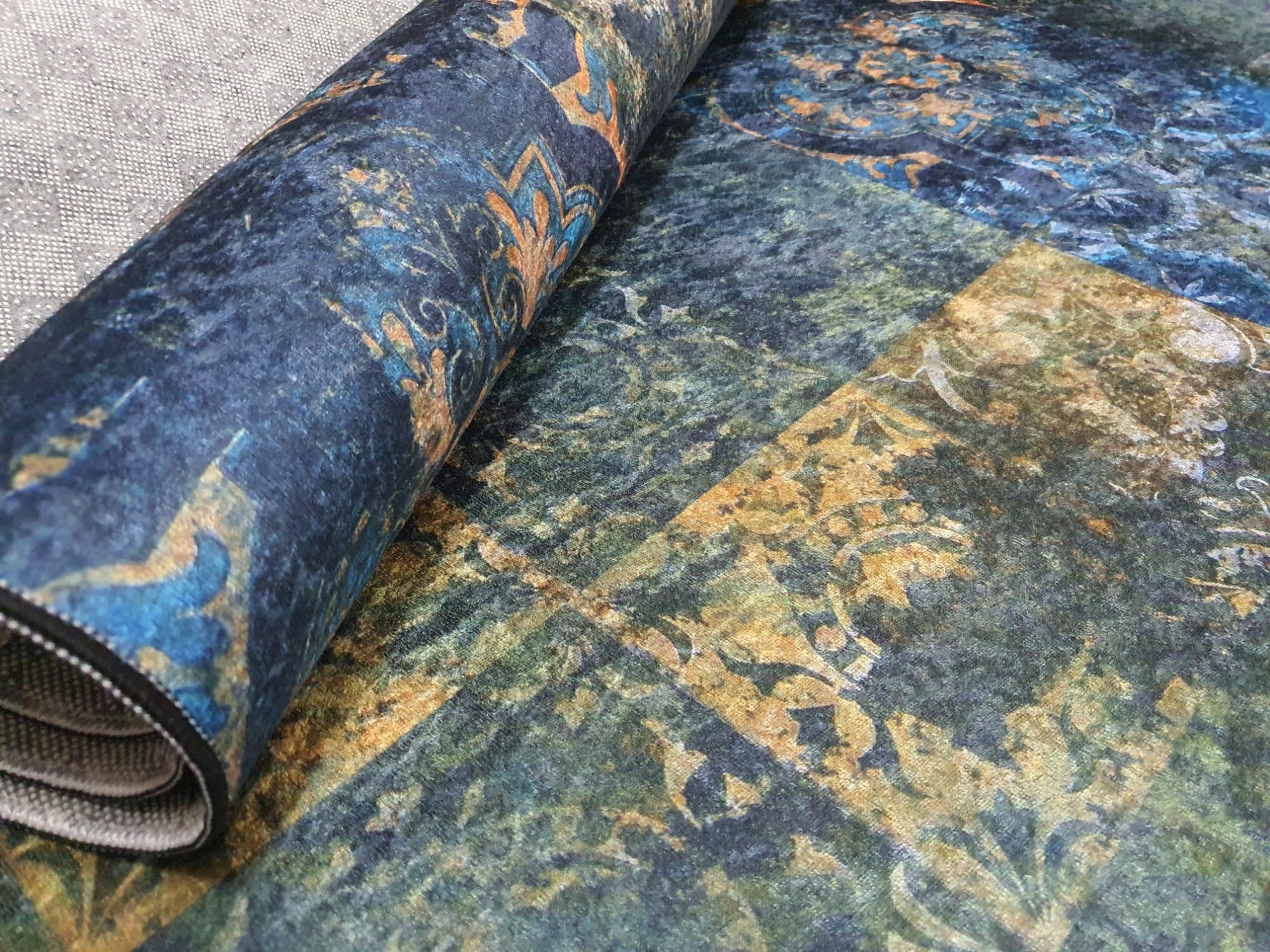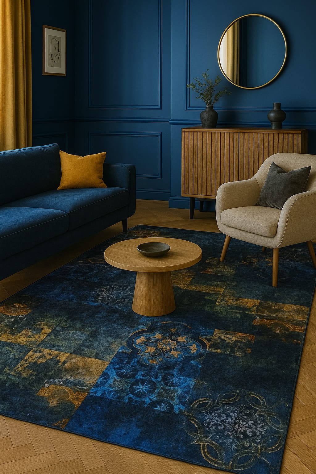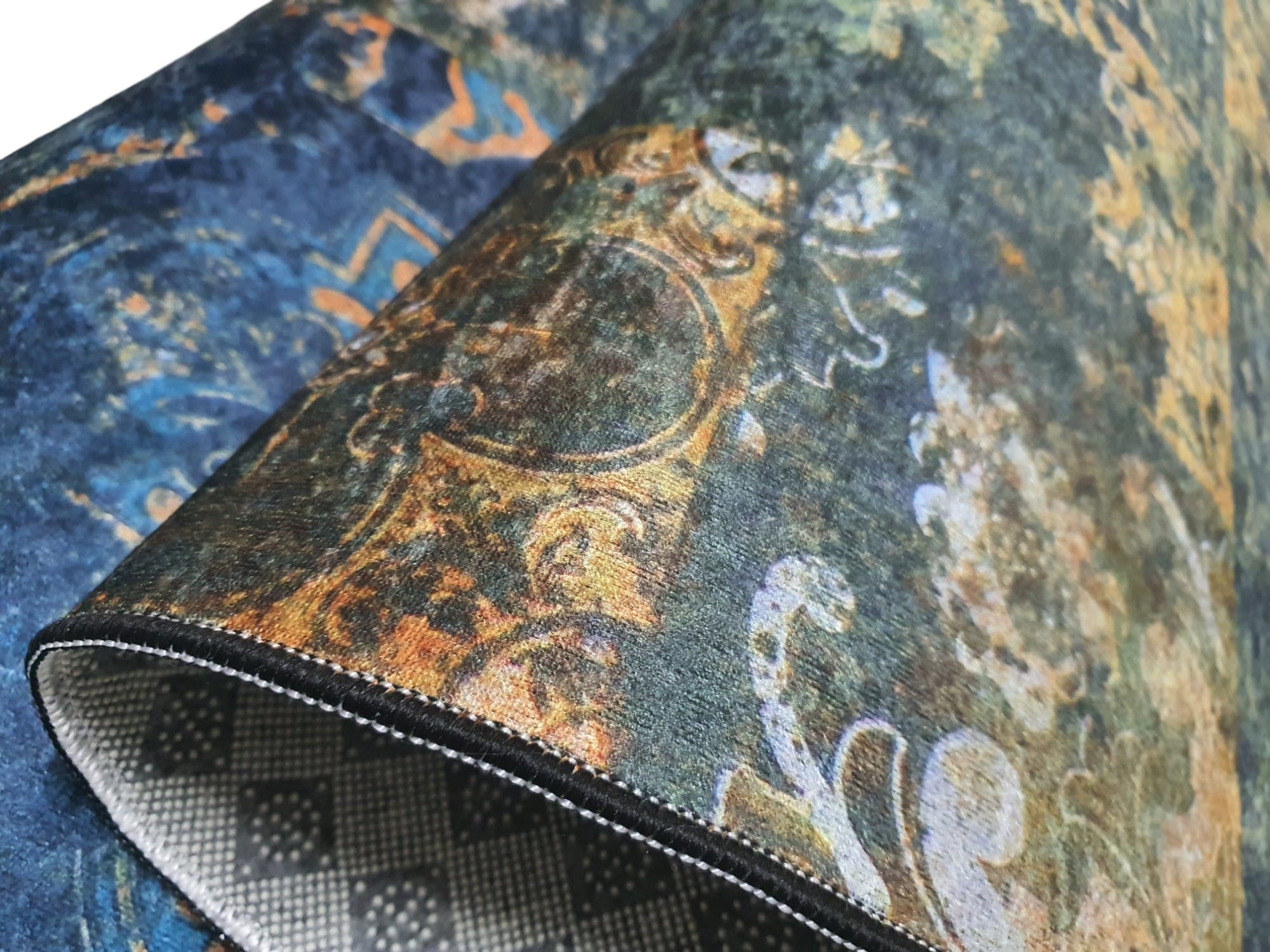 Dywan DIGITAL porto vintage styl loftowy granatowy kafelki złoty