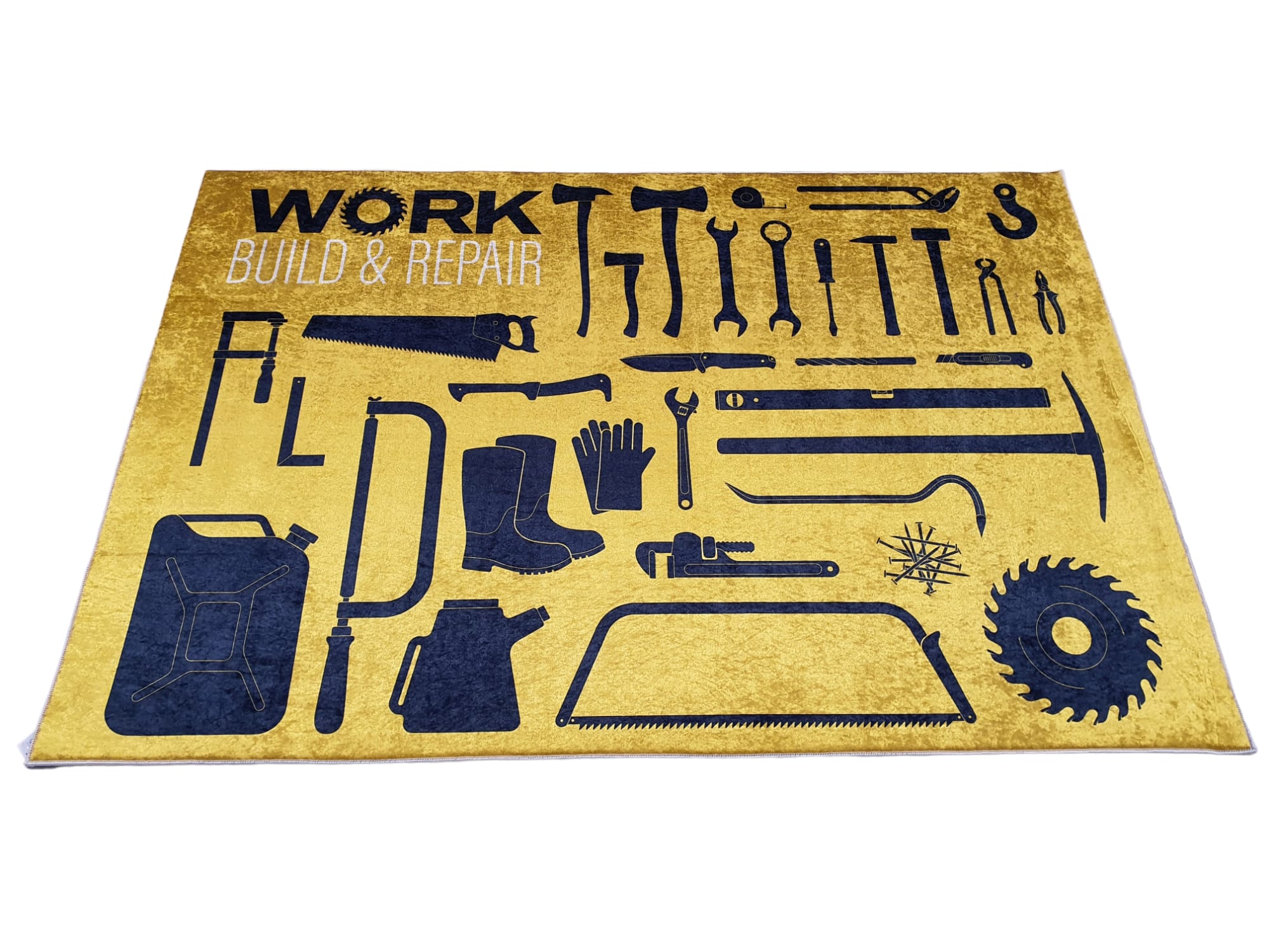 Dywan DIGITAL żółty narzędzia warsztat klucze miarka młotek latarka