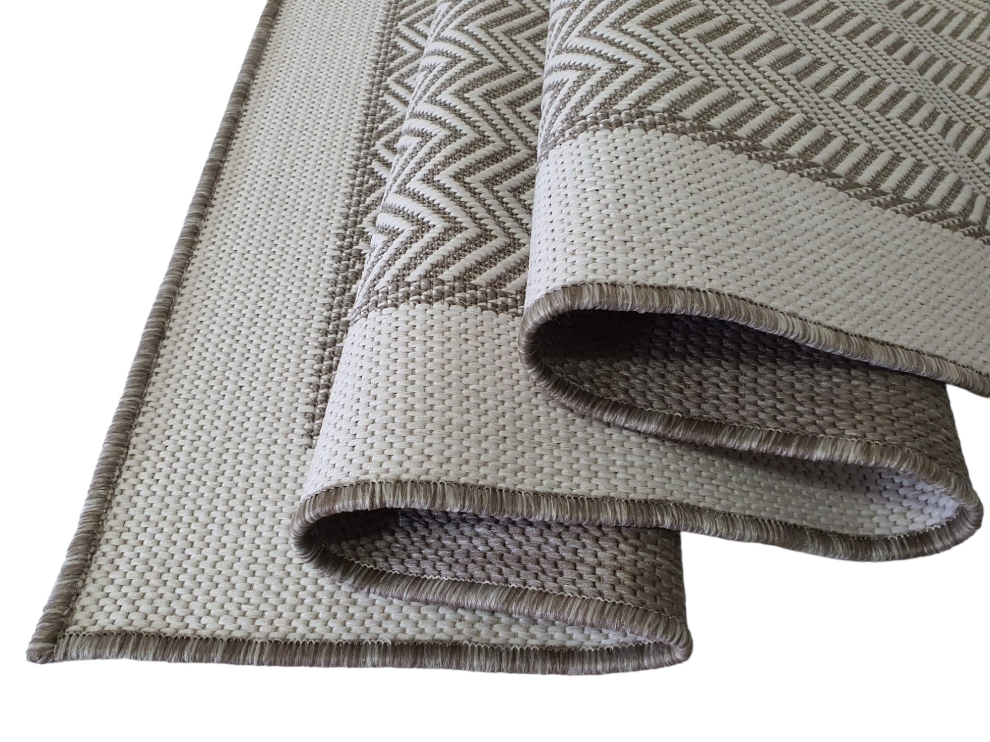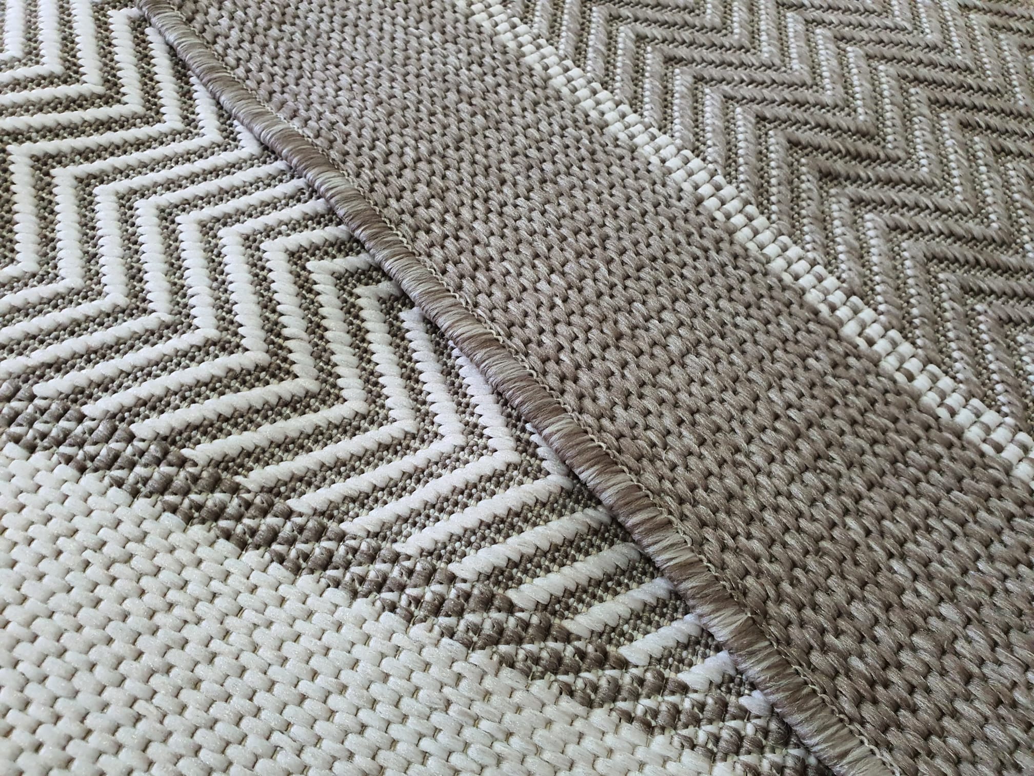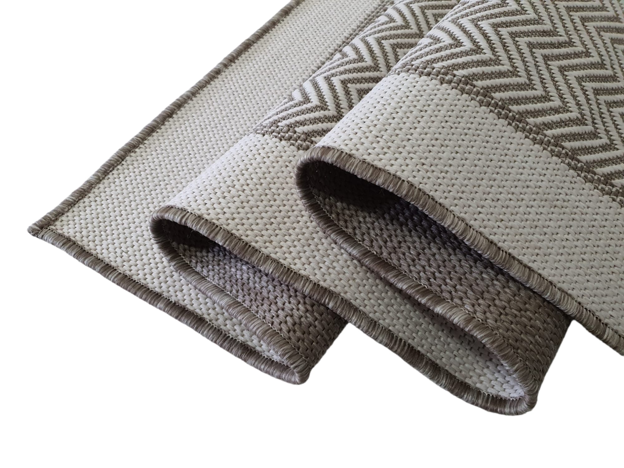 Dywan DWUSTRONNY sznurkowy LANA zygzak beżowy / kremowy na taras balkon zewnętrzny