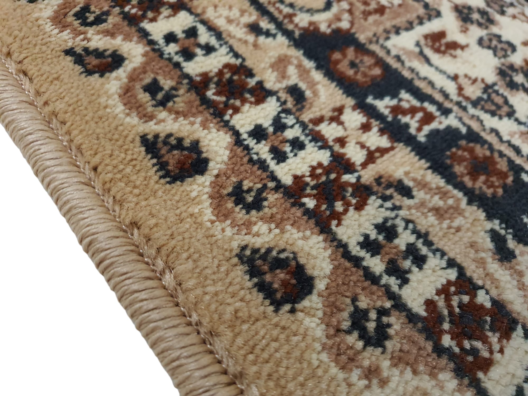 - W dotyku do złudzenia przypomina dywan wełniany. Ściślejsza struktura przędzy nadała wzorom ziarnisty (perełkowaty) wygląd co również upodabnia je do wzorów uzyskiwanych na wysokiej jakości dywanach wełnianych.
