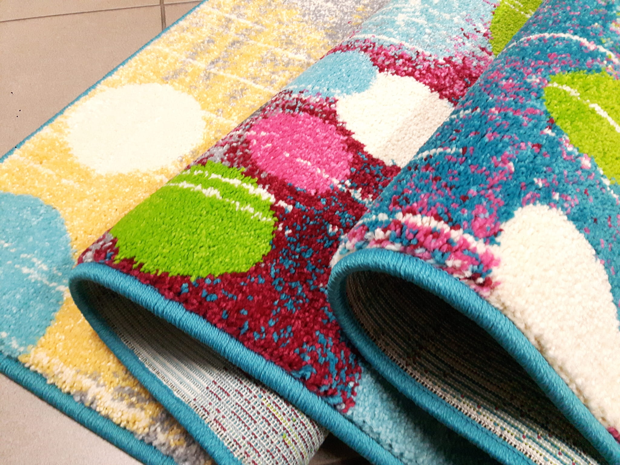 Dywan FUNKY SEM szmaragd kolorowy w kropki kleksy do przedszkola z atestem