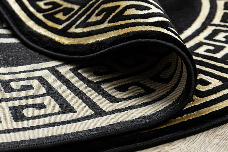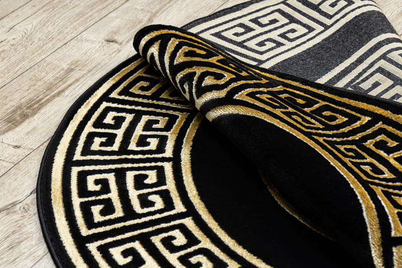 Dywan GLOSS 3D grecki greka czarno złoty koło czarny ze złotym kółko okrągły