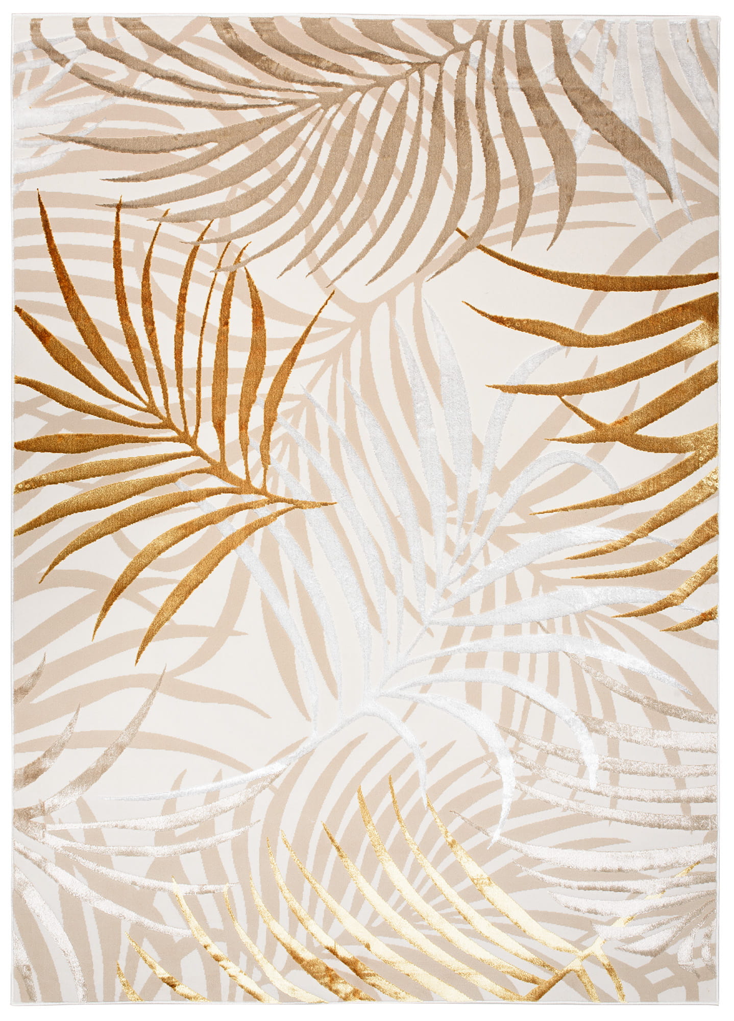 Dywan GOLDEN w palmy liście beż złoty beżowy ze złotym nowoczesny