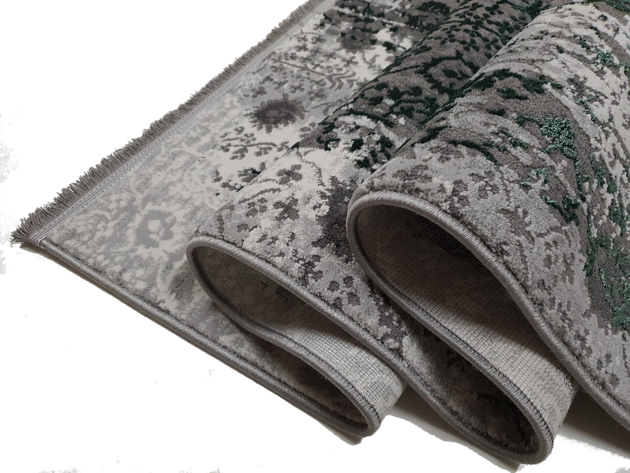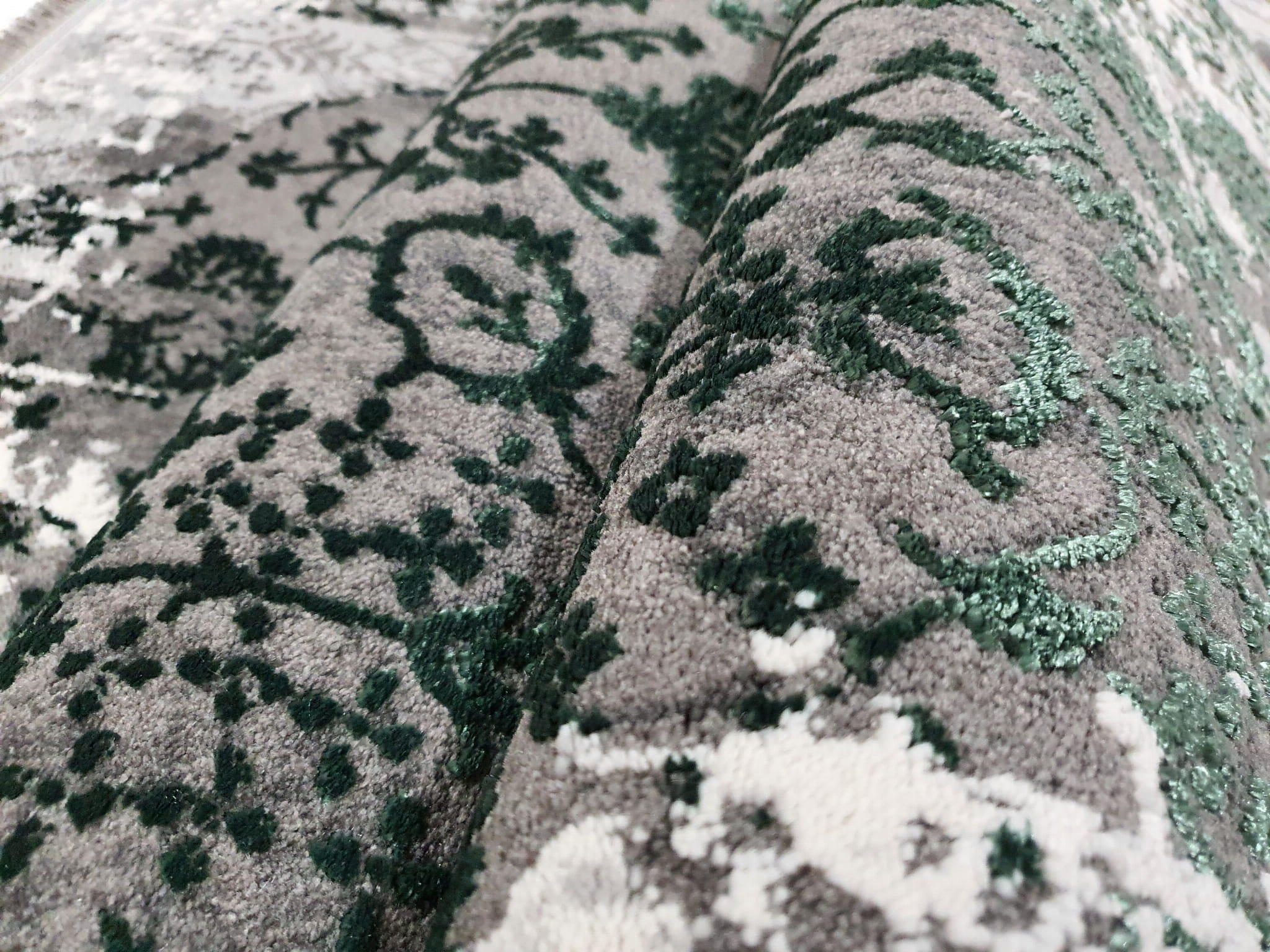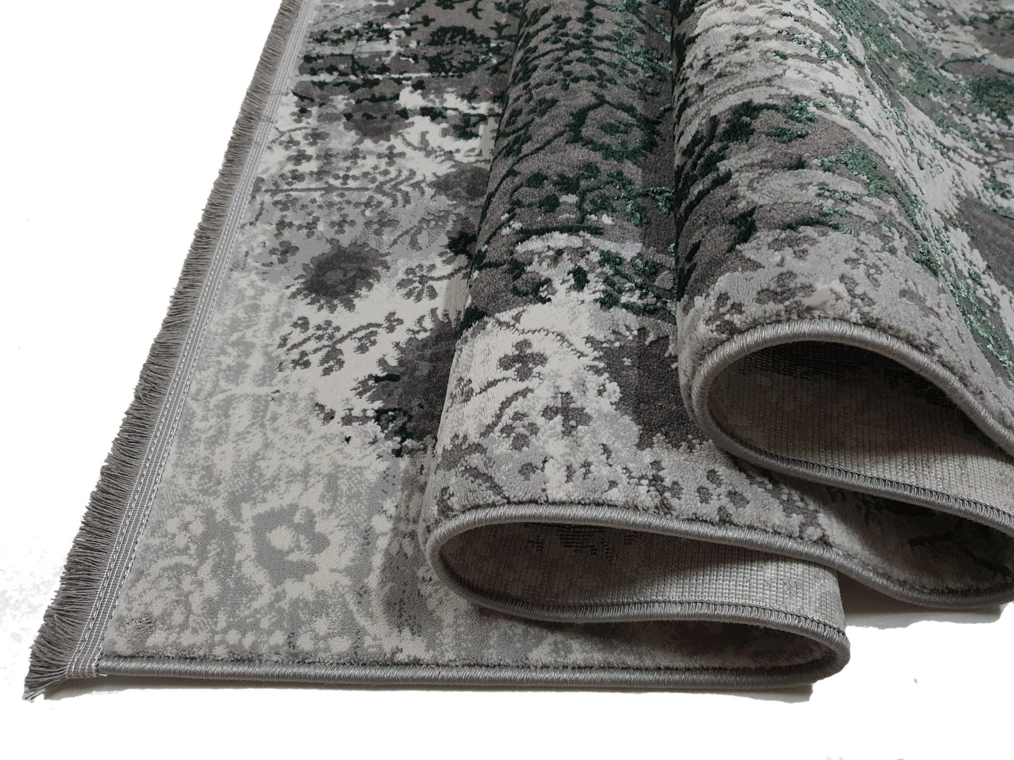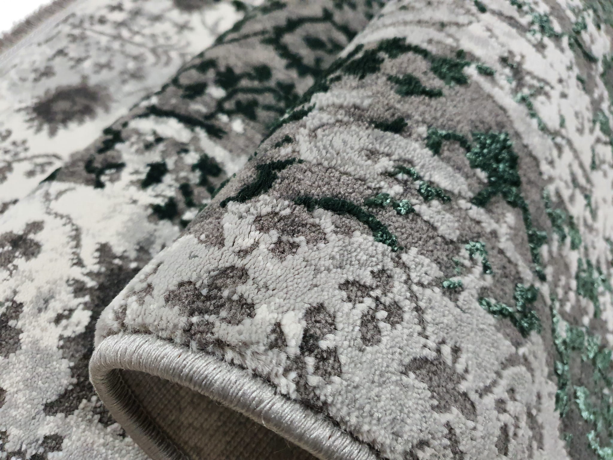 w stylu vitage loft posiada "postarzany" wzór o dwupoziomowej strukturze runa. Szaro-zielony