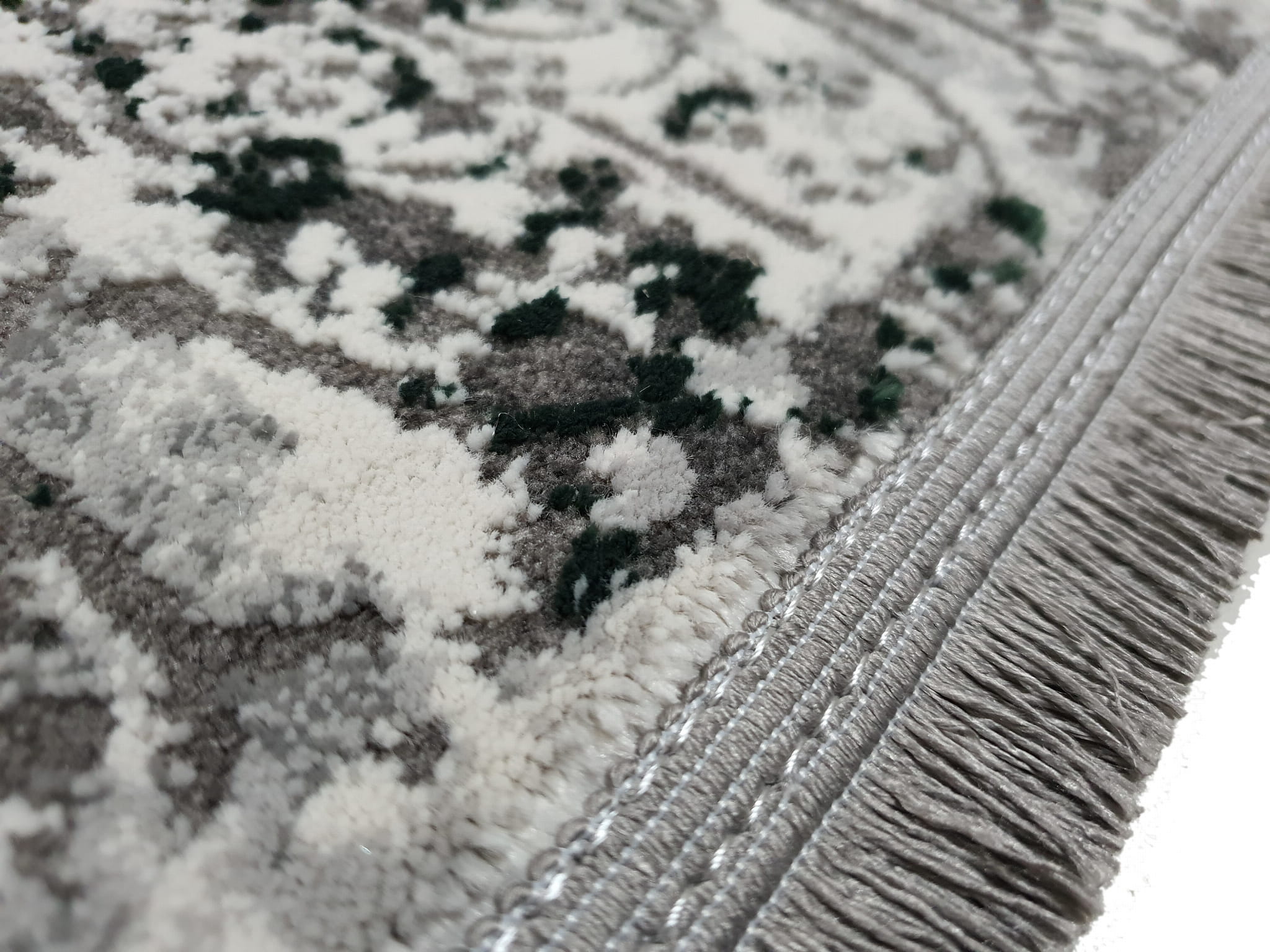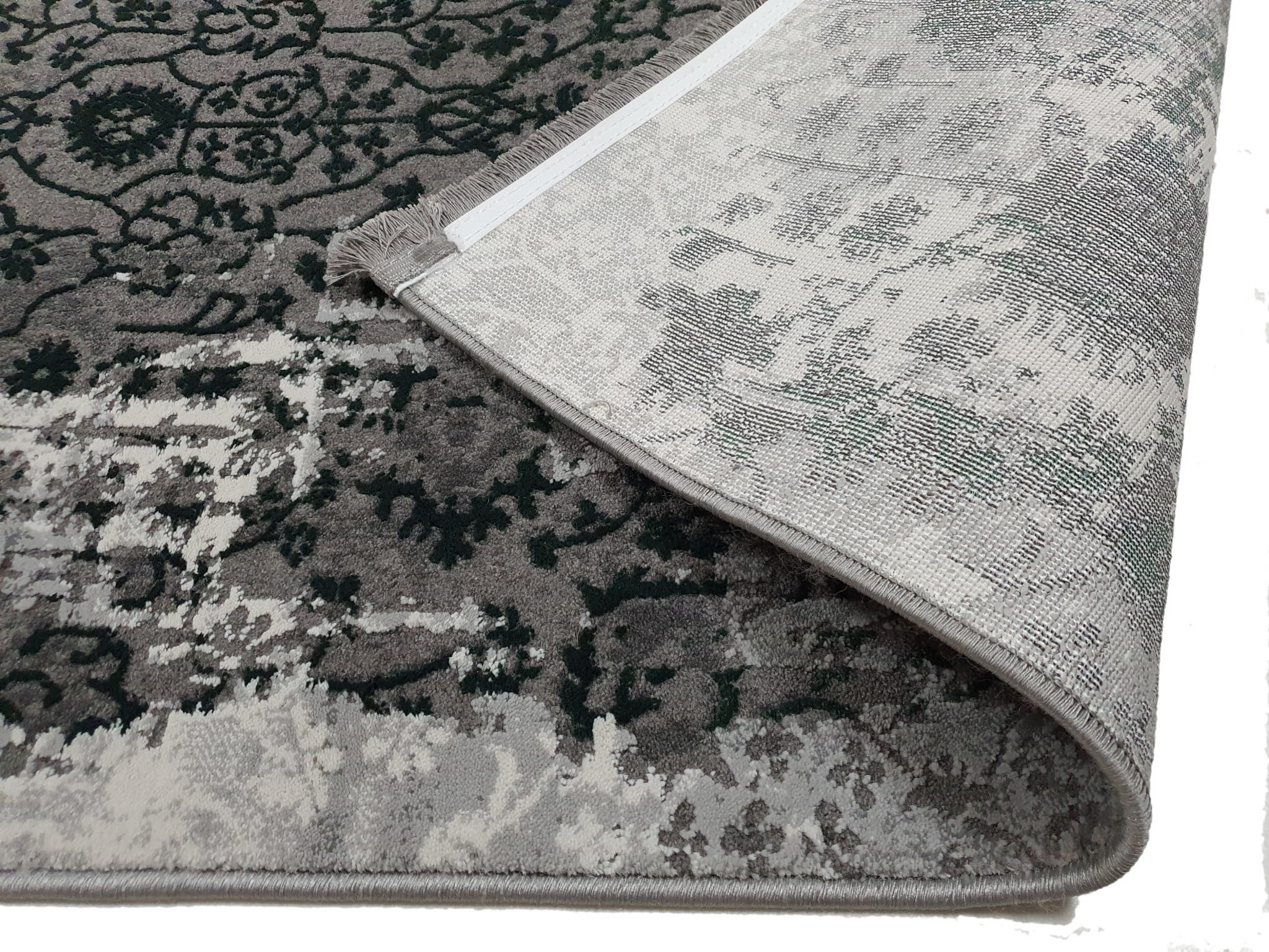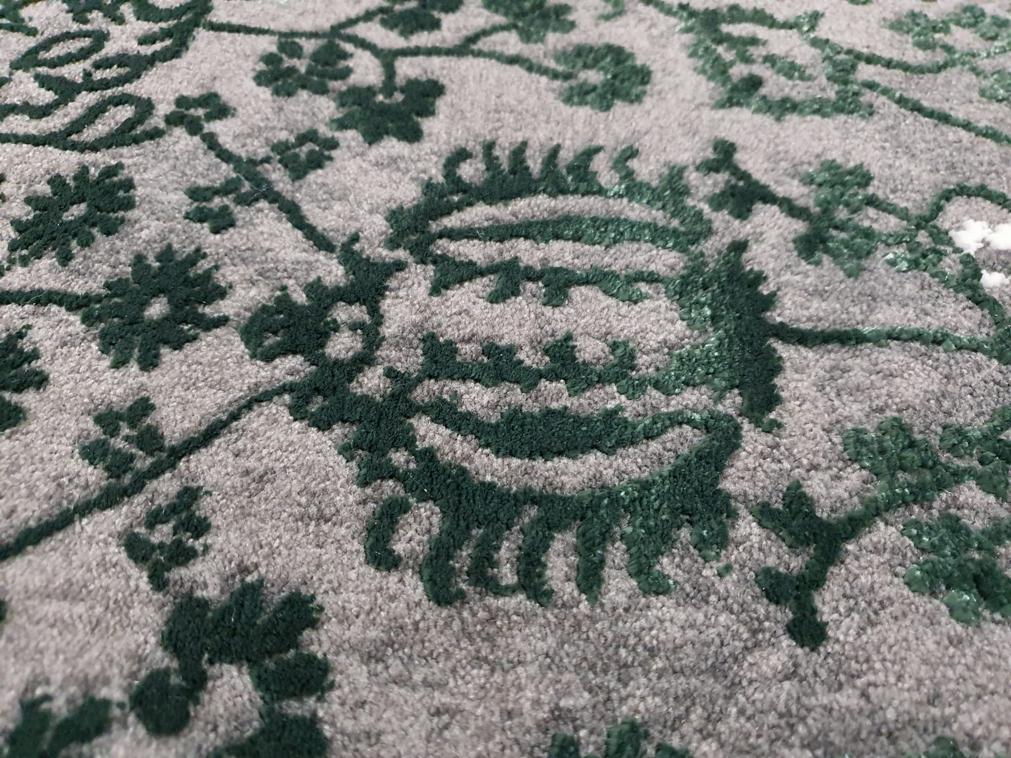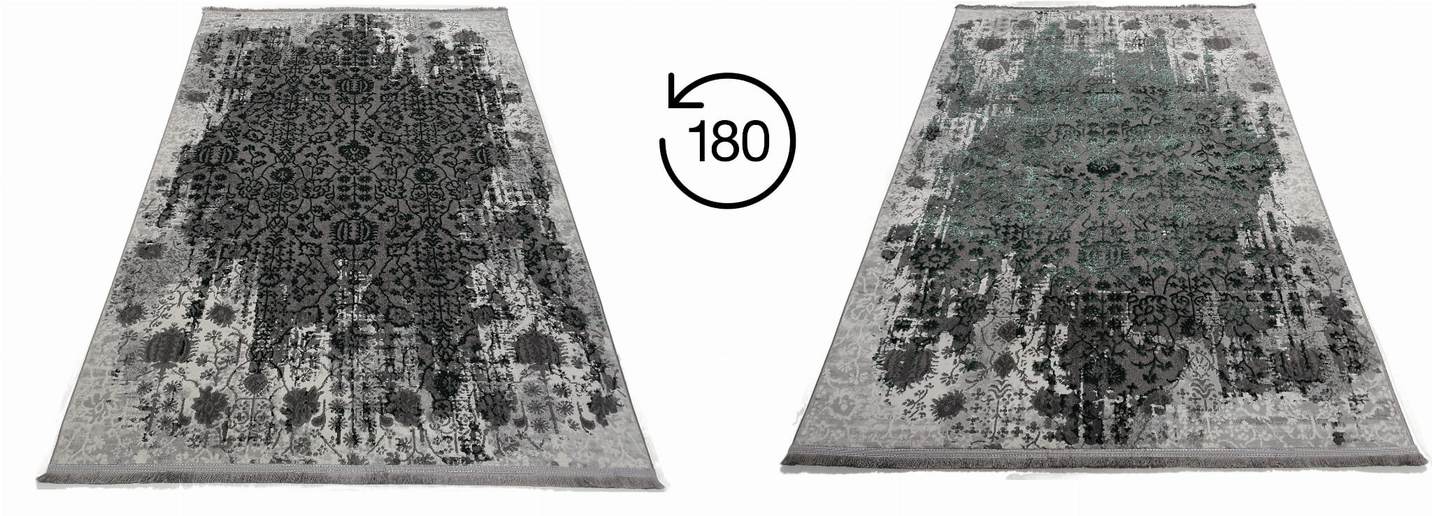 w stylu vitage loft posiada "postarzany" wzór o dwupoziomowej strukturze runa. Szaro-zielony