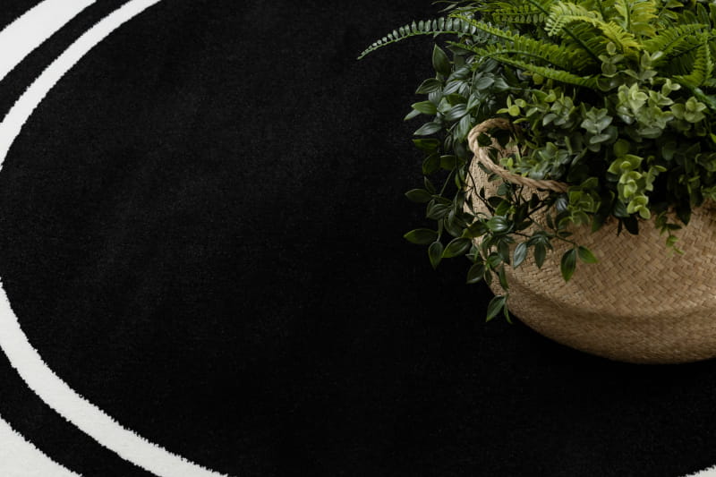 Dywan HAMPTON BORDER kreski ramka glamour czarno biały koło