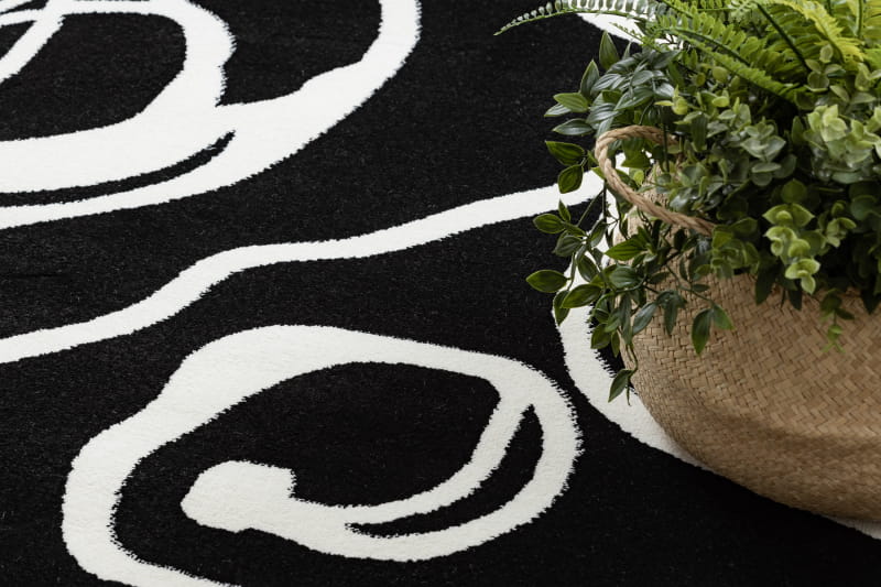 Dywan HAMPTON ROSA kreski fale kwiaty glamour czarno biały