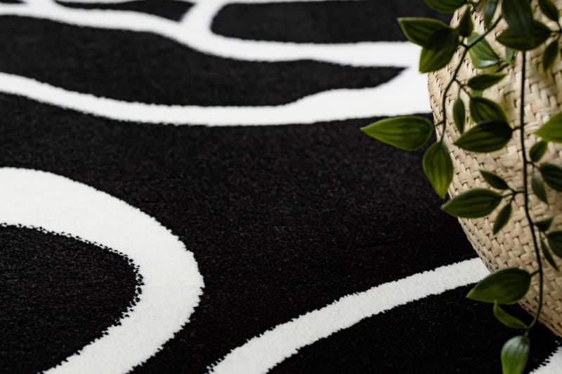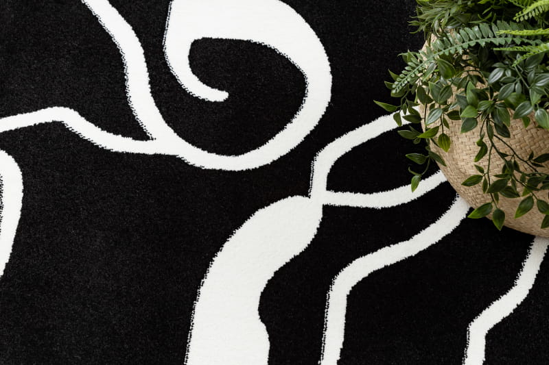 Dywan HAMPTON ROSA kreski fale kwiaty glamour czarno biały koło