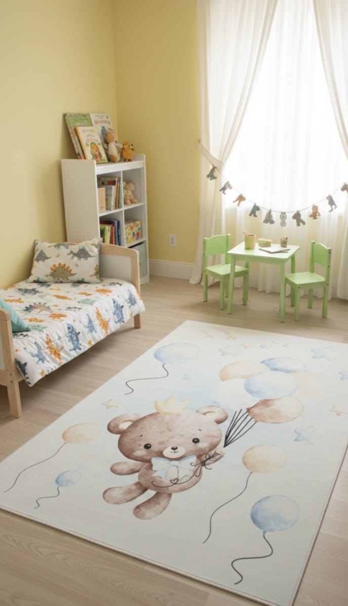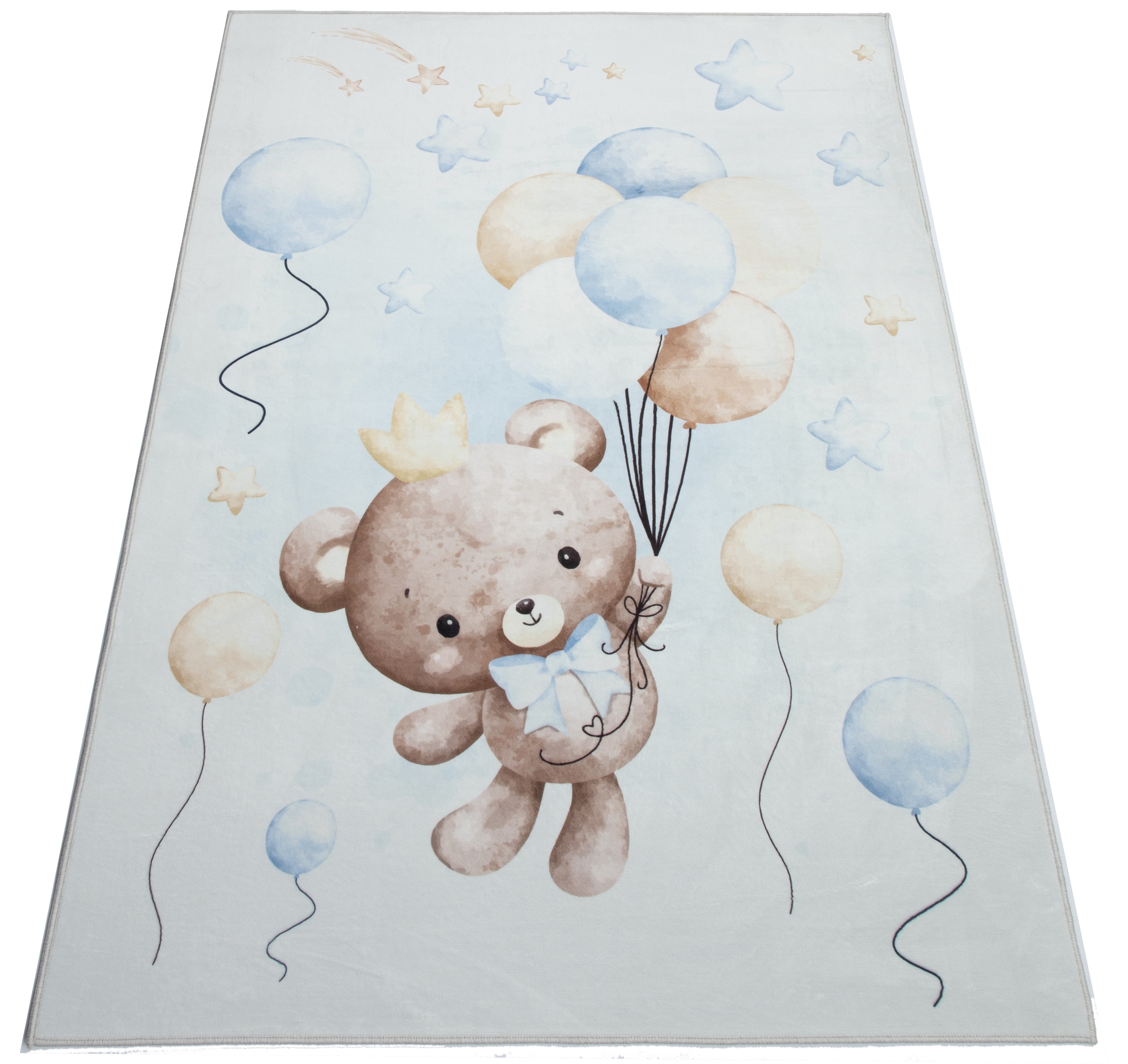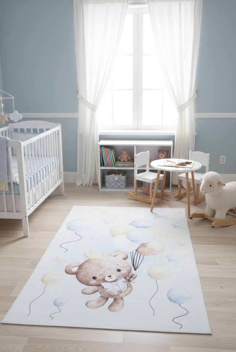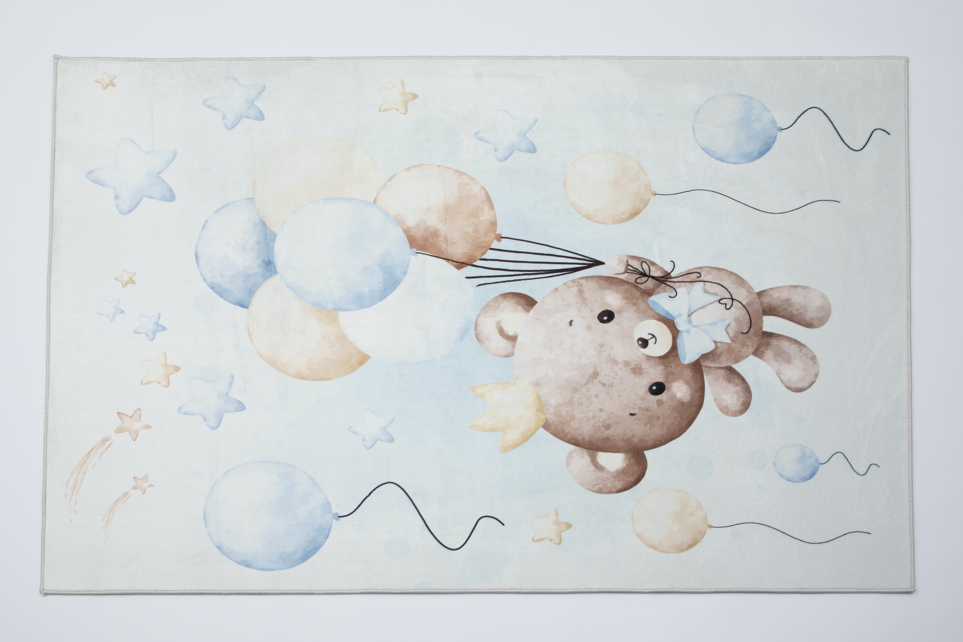 Dywan KIDS miś w balony niebieski dla chłopca pluszowy z misiem