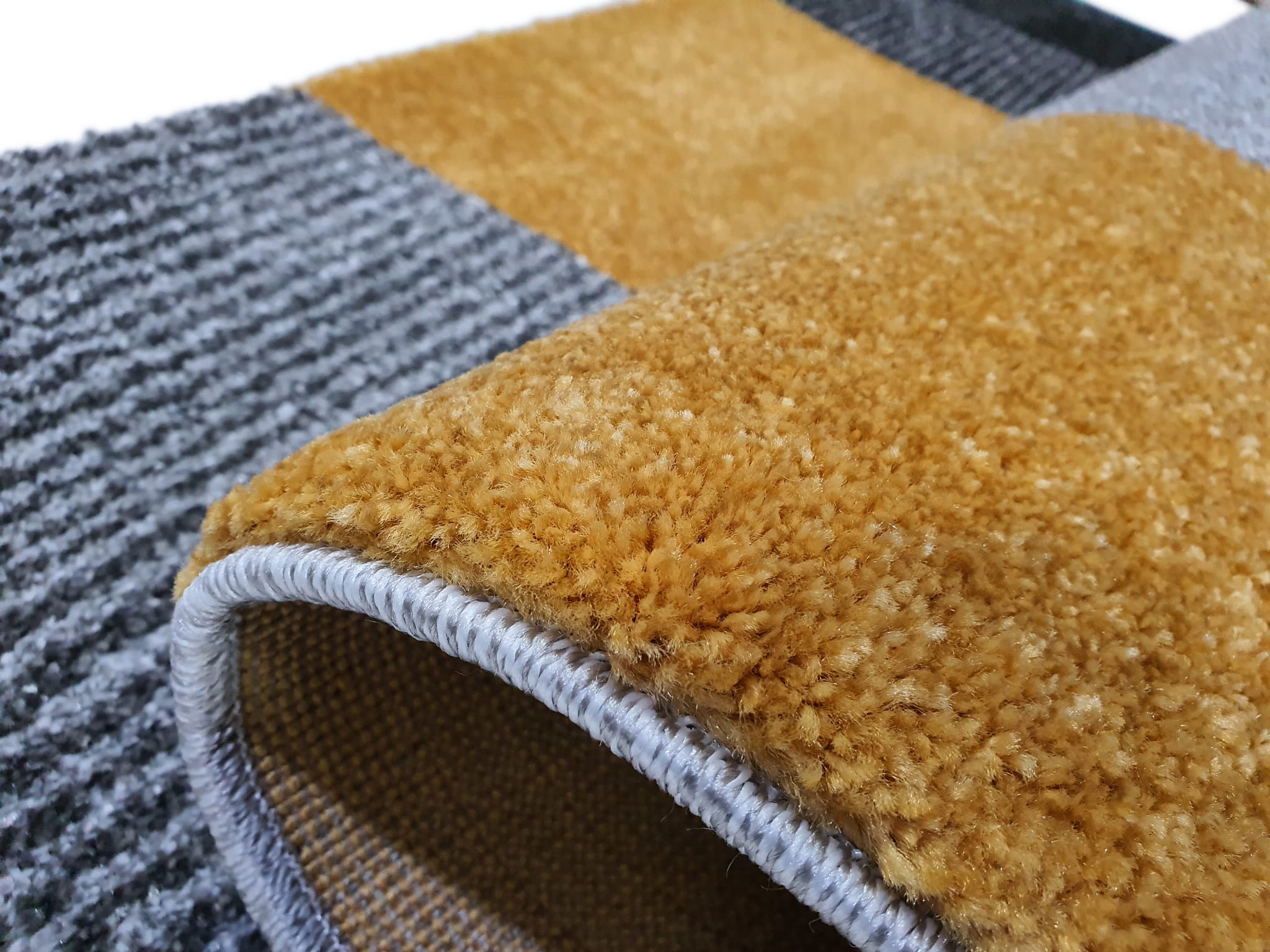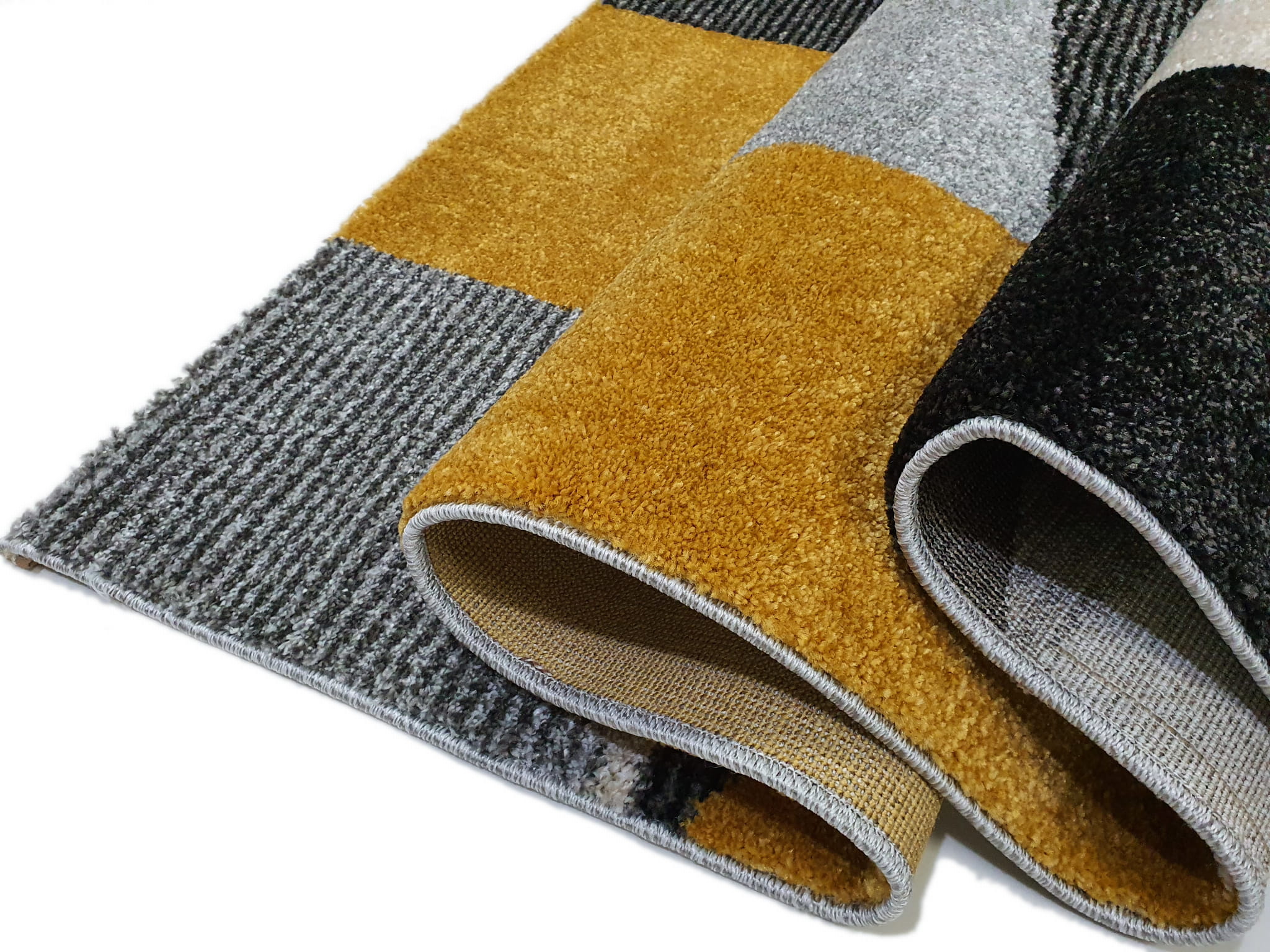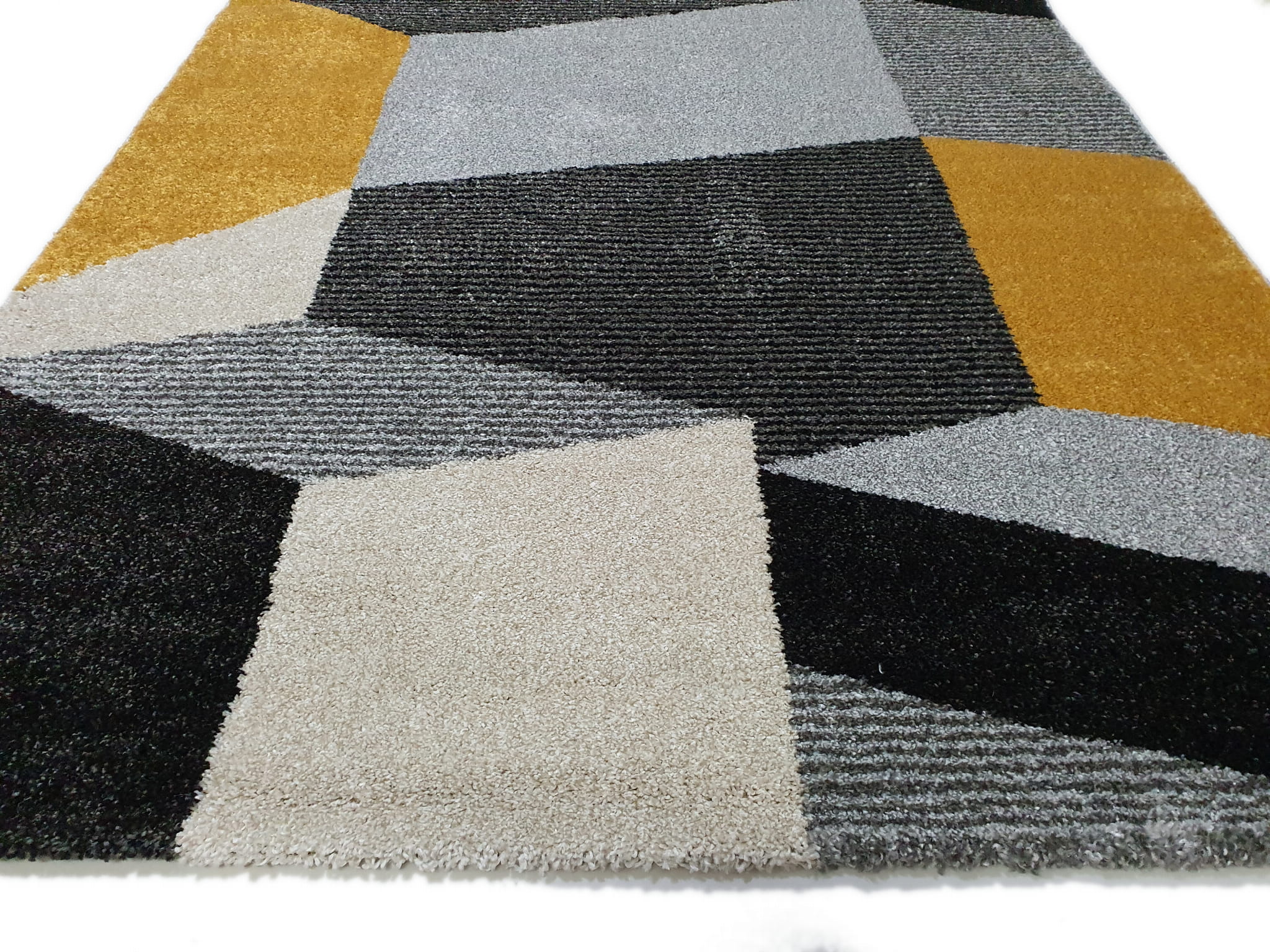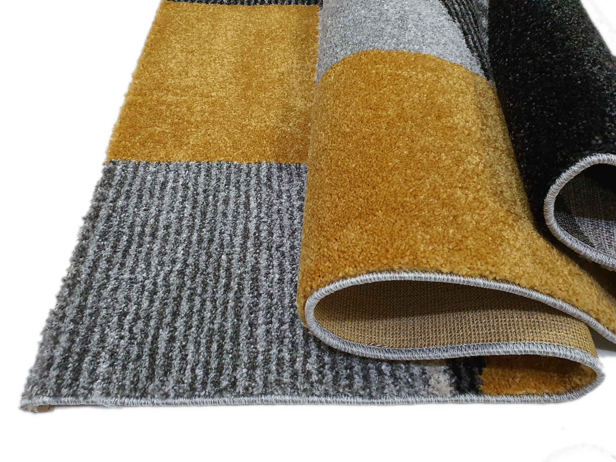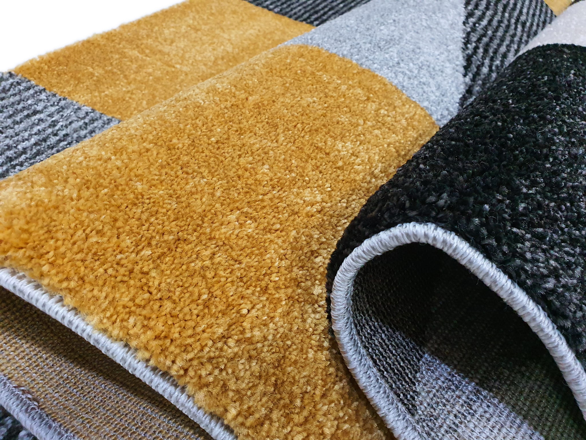 Dywan LARA szaro żółty szary z żółtym złoty geometria geo kwadraty