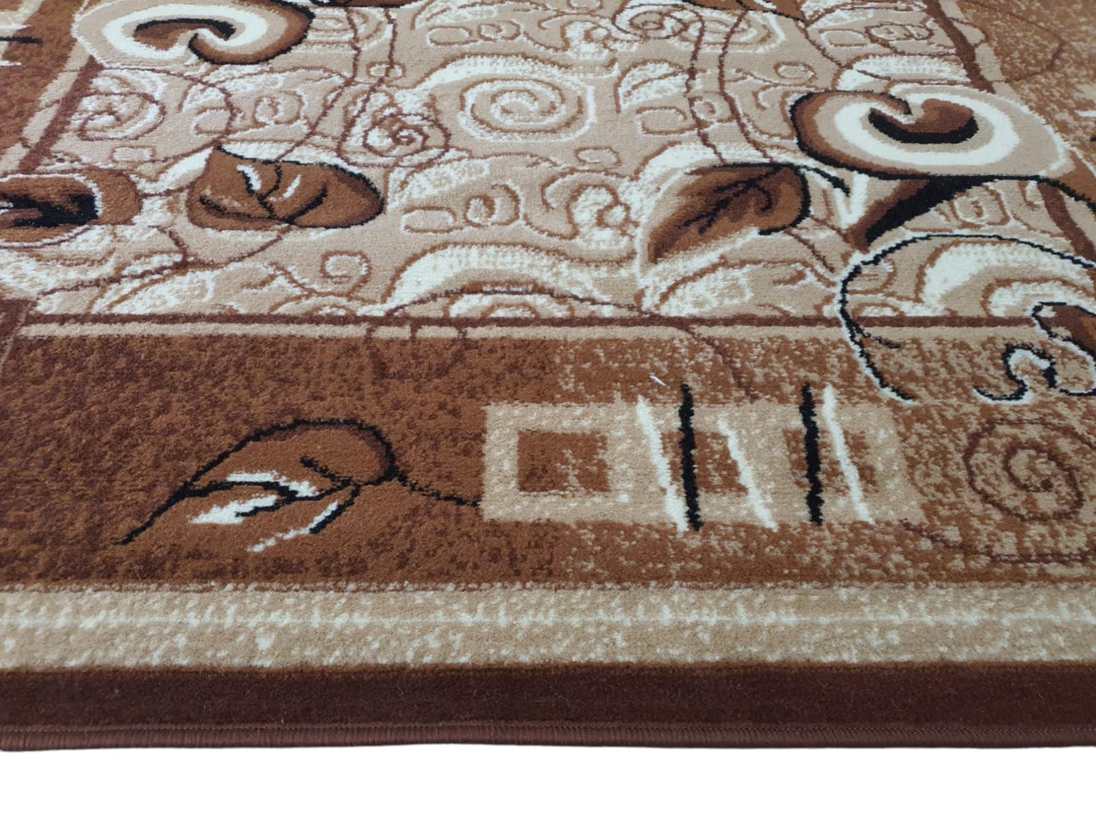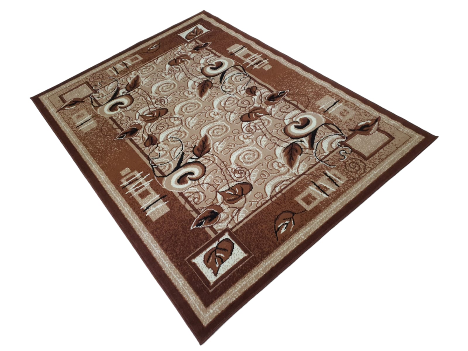Dywan LIŚCIE KWIATY KALIE klasyczny turecki bcf tani beżowy brązowy