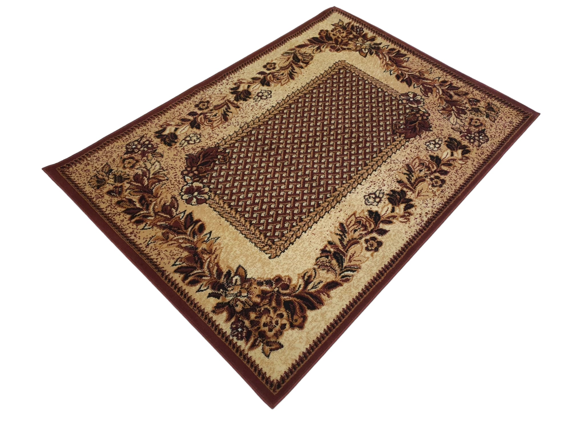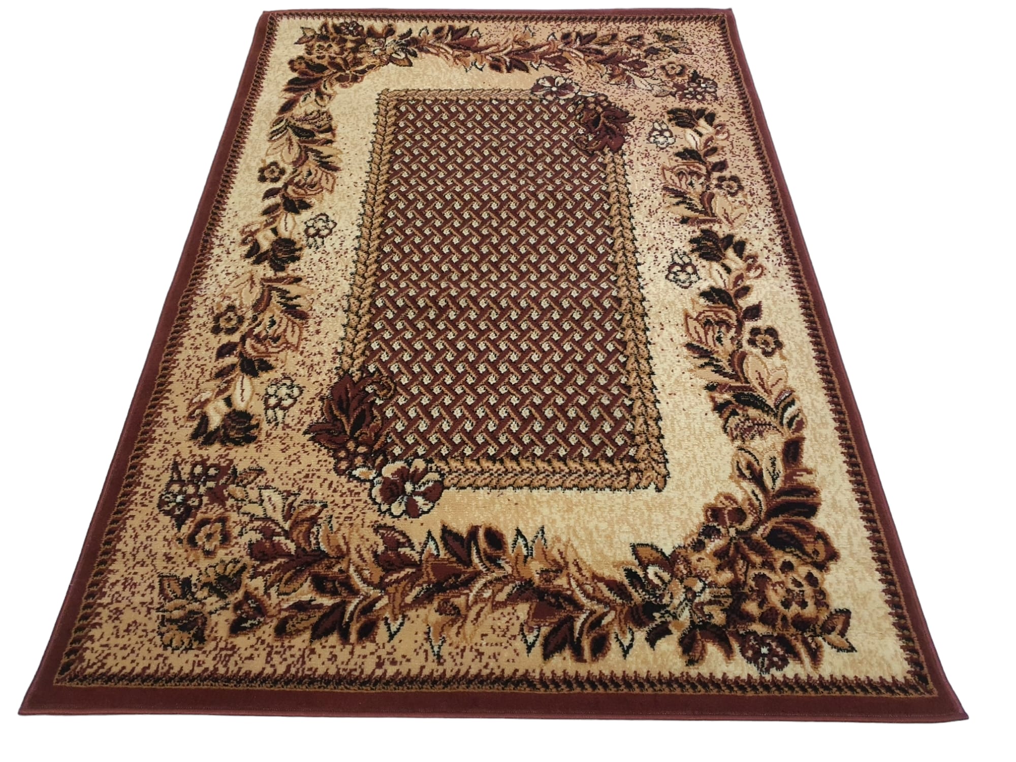 Dywan NOWOCZESNY turecki bcf tani brązowy klasyczny ramka liście