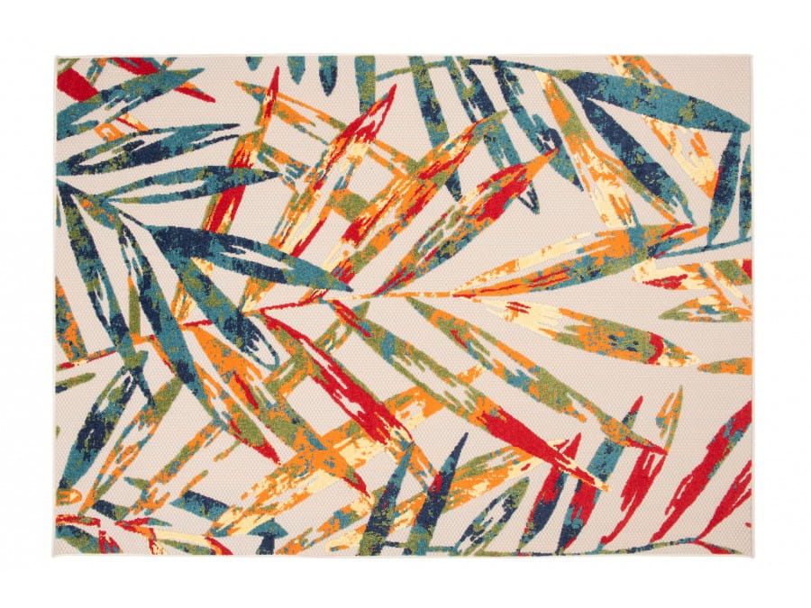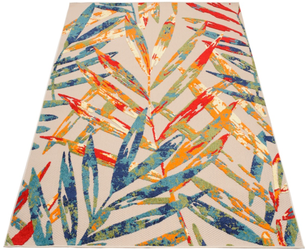 Dywan sznurkowy AVENTURA tarasowy w palmy liście kolorowe kremowy
