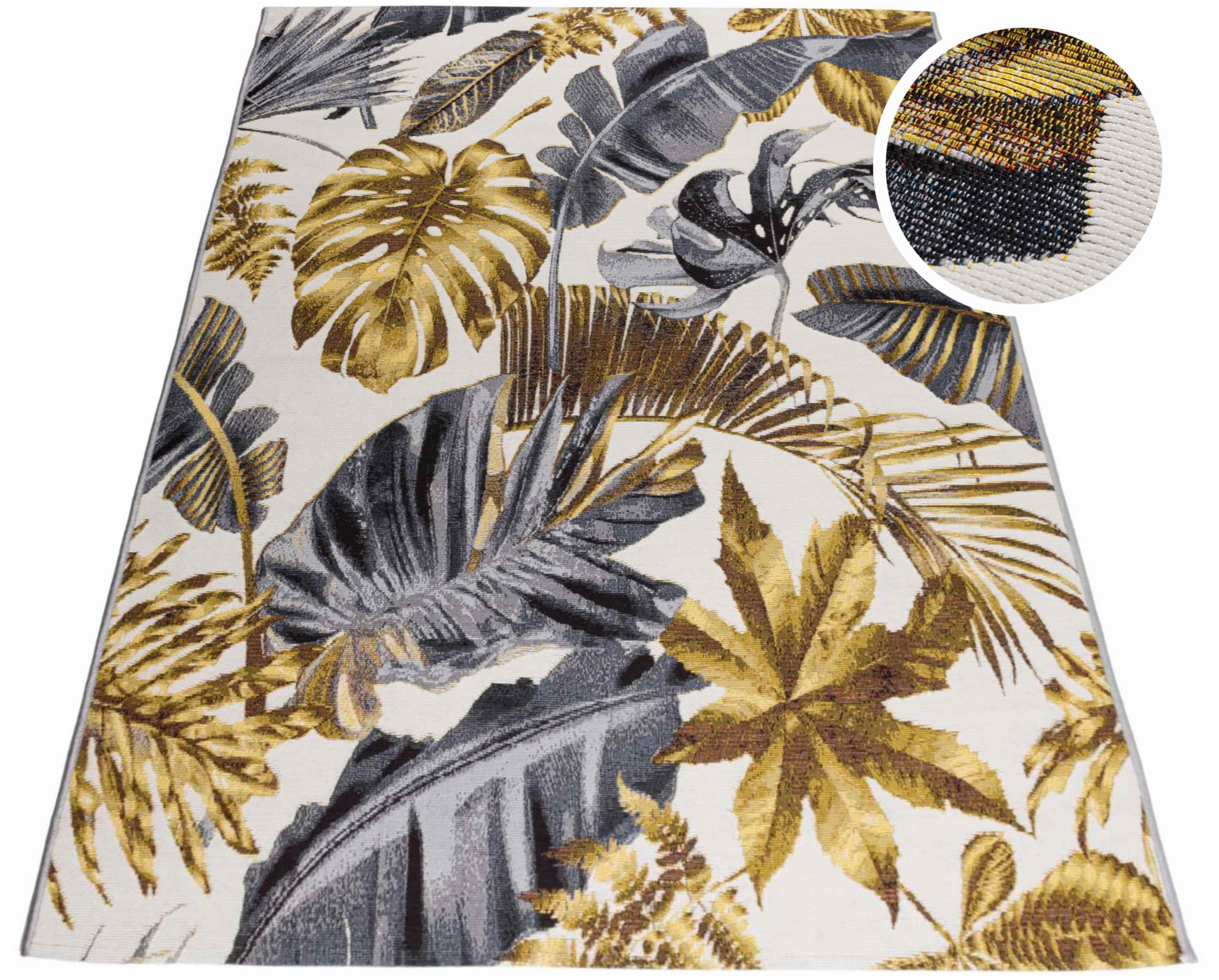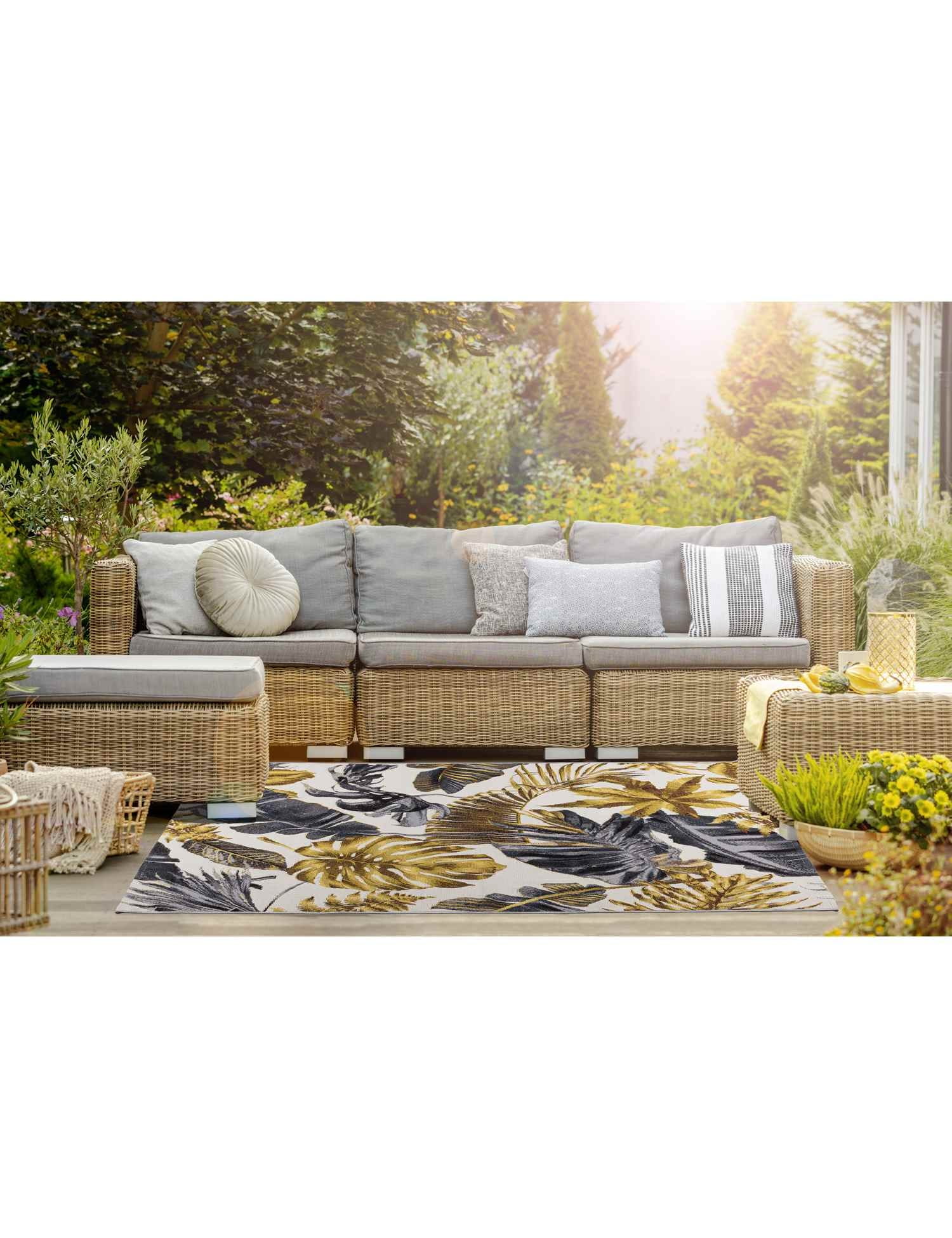 Dywan sznurkowy CAPPUCINO tarasowy w palmy liście złoty na taras balkon patio